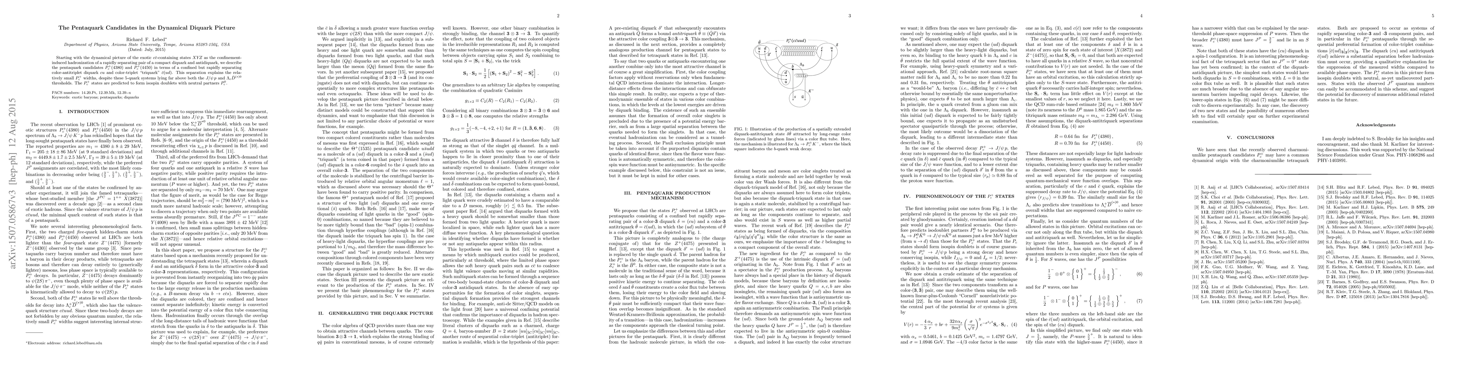 Starting with the dynamical picture of the exotic $c\bar c$-containing states $XY \! Z$ as the confinement-induced hadronization of a rapidly separating pair of a compact diquark and antidiquark, we describe the pentaquark candidates $P_c^+(4380)$ and $P_c^+(4450)$ in terms of a confined but rapidly separating color-antitriplet diquark $cu$ and color-triplet "triquark" $\bar c (ud)$. This separation explains the relatively small $P_c^+$ widths, despite these 5-quark systems lying far above both the $J/\psi \, p$ and $\Lambda_c \bar D^{(*)0}$ thresholds. The $P_c^+$ states are predicted to form isospin doublets with neutral partners $P_c^0$.