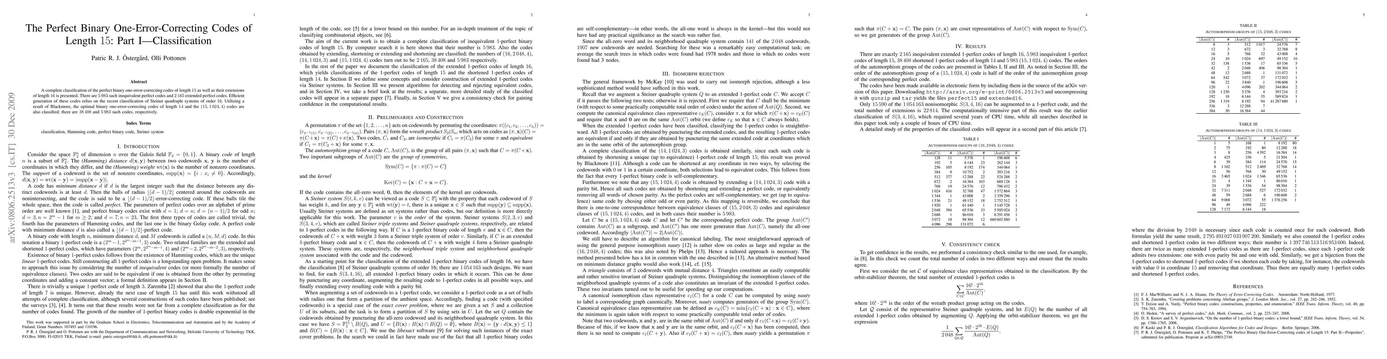 This paper classifies all perfect binary one-error-correcting codes of length 15 and their extensions to length 16, identifying 5983 and 2165 inequivalent codes, respectively. The classification leverages recent advancements in Steiner quadruple systems and extends to optimal binary codes of length 14 and (15, 1024, 4) codes.