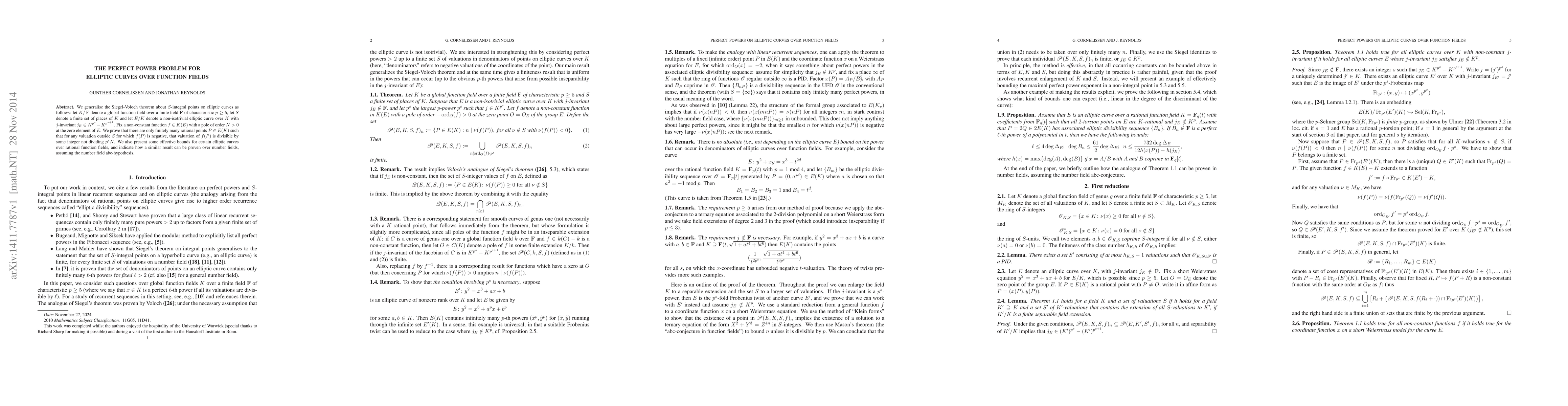 The paper generalizes the Siegel-Voloch theorem for elliptic curves over global function fields, proving finiteness of certain S-integral points and providing effective bounds for rational function fields. It also suggests a similar result for number fields under the abc-hypothesis.