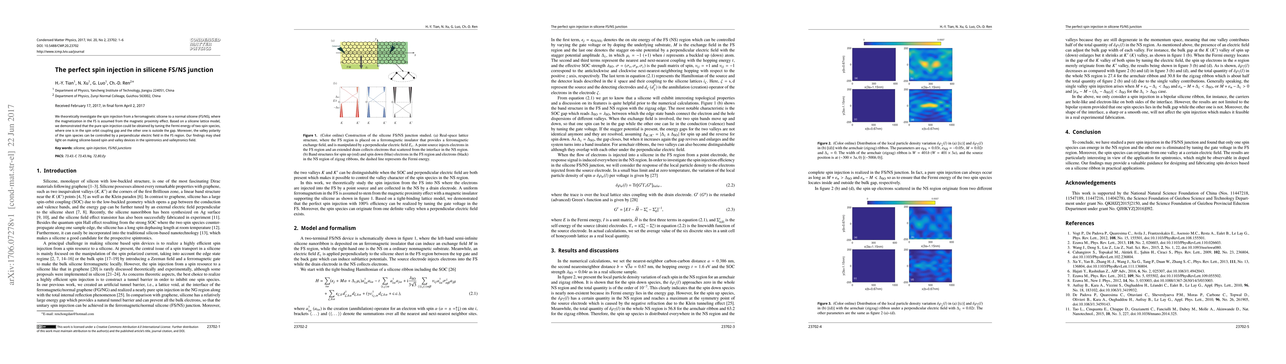 This paper theoretically investigates spin injection from a ferromagnetic silicene to a normal silicene, demonstrating pure spin injection by tuning the Fermi energy. The valley polarity of the spin species can be controlled via an electric field, potentially aiding in the development of silicene-based spin and valley devices.
