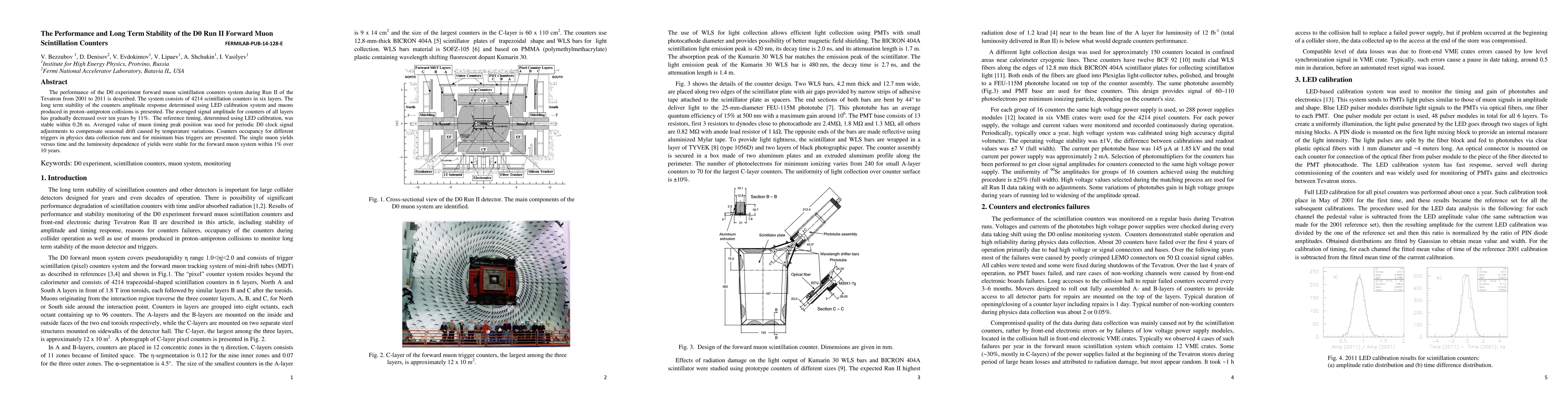 The D0 Run II forward muon scintillation counters system performance from 2001-2011 is analyzed, revealing a 11% gradual decrease in average signal amplitude over a decade. The reference timing remained stable within 0.26 ns, utilized for D0 clock adjustments to counter temperature-induced drift. Counters' occupancy and single muon yields showed consistent stability within 1% over ten years.