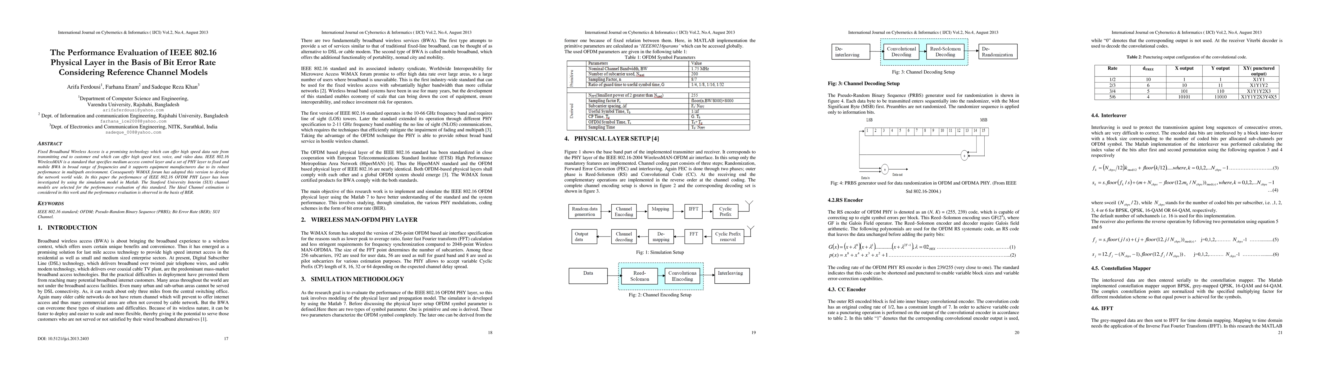 Fixed Broadband Wireless Access is a promising technology which can offer high speed data rate from transmitting end to customer end which can offer high speed text, voice, and video data. IEEE 802.16 WirelessMAN is a standard that specifies medium access control layer and a set of PHY layer to fixed and mobile BWA in broad range of frequencies and it supports equipment manufacturers due to its robust performance in multipath environment. Consequently WiMAX forum has adopted this version to develop the network world wide. In this paper the performance of IEEE 802.16 OFDM PHY Layer has been investigated by using the simulation model in Matlab. The Stanford University Interim (SUI) channel models are selected for the performance evaluation of this standard. The Ideal Channel estimation is considered in this work and the performance evaluation is observed in the basis of BER.