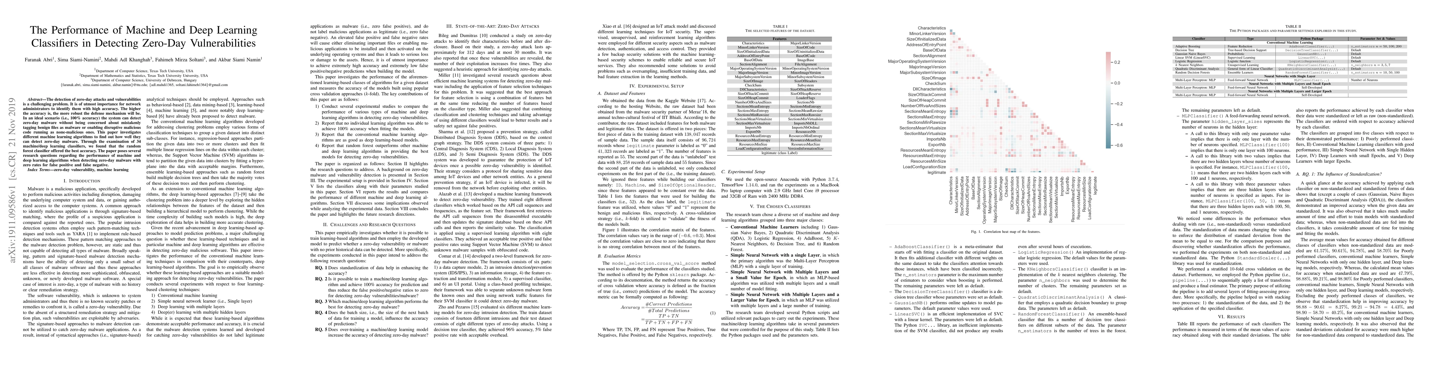 This paper evaluates the performance of 34 machine and deep learning classifiers in detecting zero-day vulnerabilities, finding that the random forest classifier achieves the highest accuracy. The study raises questions about achieving zero false positive and false negative rates in zero-day detection.