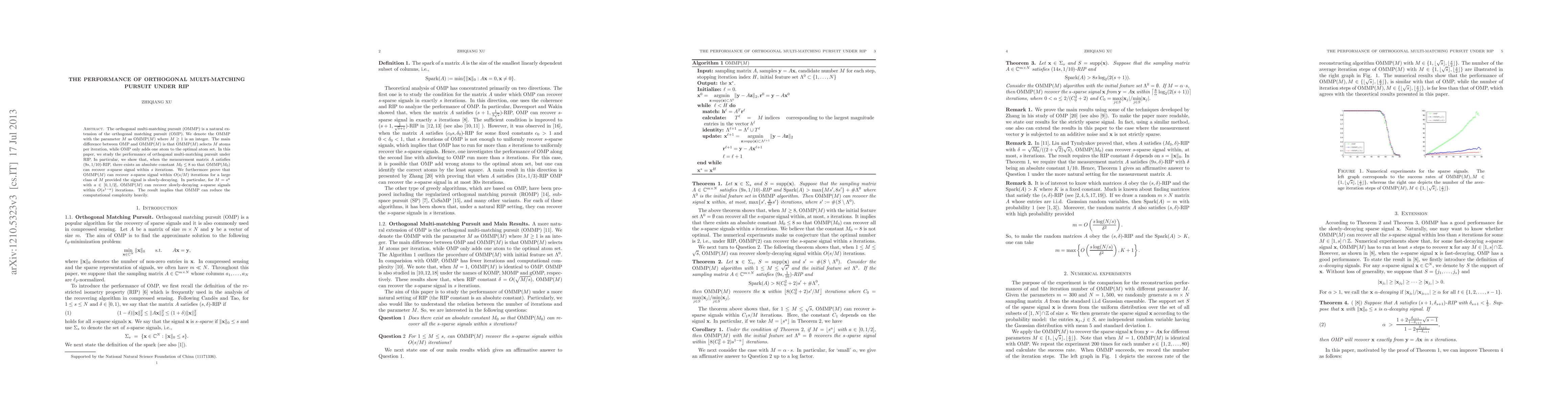 The orthogonal multi-matching pursuit (OMMP) is a natural extension of orthogonal matching pursuit (OMP). We denote the OMMP with the parameter $M$ as OMMP(M) where $M\geq 1$ is an integer. The main difference between OMP and OMMP(M) is that OMMP(M) selects $M$ atoms per iteration, while OMP only adds one atom to the optimal atom set. In this paper, we study the performance of orthogonal multi-matching pursuit (OMMP) under RIP. In particular, we show that, when the measurement matrix A satisfies $(9s, 1/10)$-RIP, there exists an absolutely constant $M_0\leq 8$ so that OMMP(M_0) can recover $s$-sparse signal within $s$ iterations. We furthermore prove that, for slowly-decaying $s$-sparse signal, OMMP(M) can recover s-sparse signal within $O(\frac{s}{M})$ iterations for a large class of $M$. In particular, for $M=s^a$ with $a\in [0,1/2]$, OMMP(M) can recover slowly-decaying $s$-sparse signal within $O(s^{1-a})$ iterations. The result implies that OMMP can reduce the computational complexity heavily.