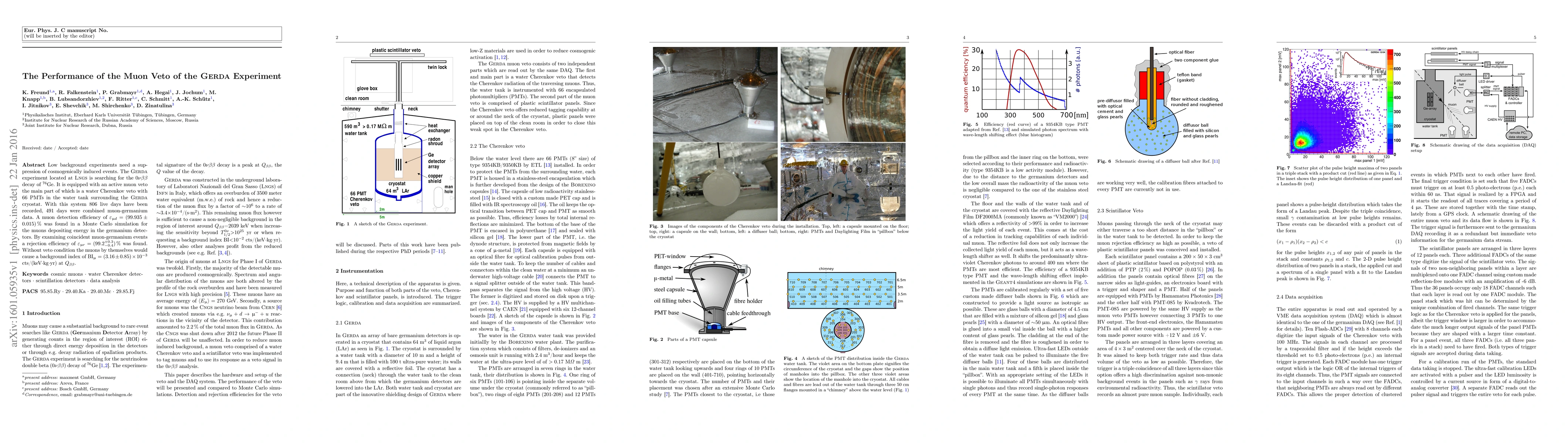 The GERDA experiment employs a water Cherenkov muon veto system to suppress cosmogenic events, achieving a muon detection efficiency of 99.935% and a rejection efficiency of 99.2%. The veto system significantly reduces the background index caused by muons.