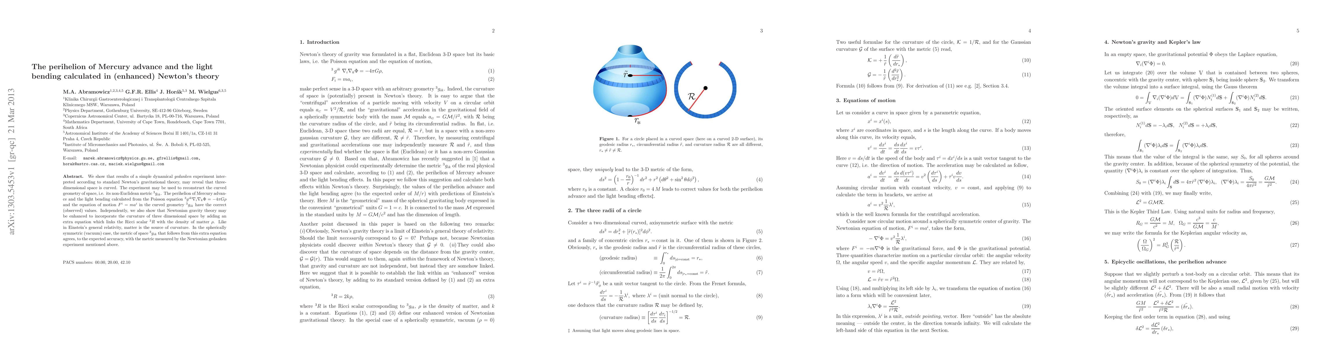 We show that results of a simple dynamical gedanken experiment interpreted according to standard Newton's gravitational theory, may reveal that three-dimensional space is curved. The experiment may be used to reconstruct the curved geometry of space, i.e. its non-Euclidean metric. The perihelion of Mercury advance and the light bending calculated from the Poisson equation and the equation of motion in the curved geometry have the correct (observed) values. Independently, we also show that Newtonian gravity theory may be enhanced to incorporate the curvature of three dimensional space by adding an extra equation which links the Ricci scalar with the density of matter. Like in Einstein's general relativity, matter is the source of curvature. In the spherically symmetric (vacuum) case, the metric of space 3gik that follows from this extra equation agrees, to the expected accuracy, with the metric measured by the Newtonian gedanken experiment mentioned above.