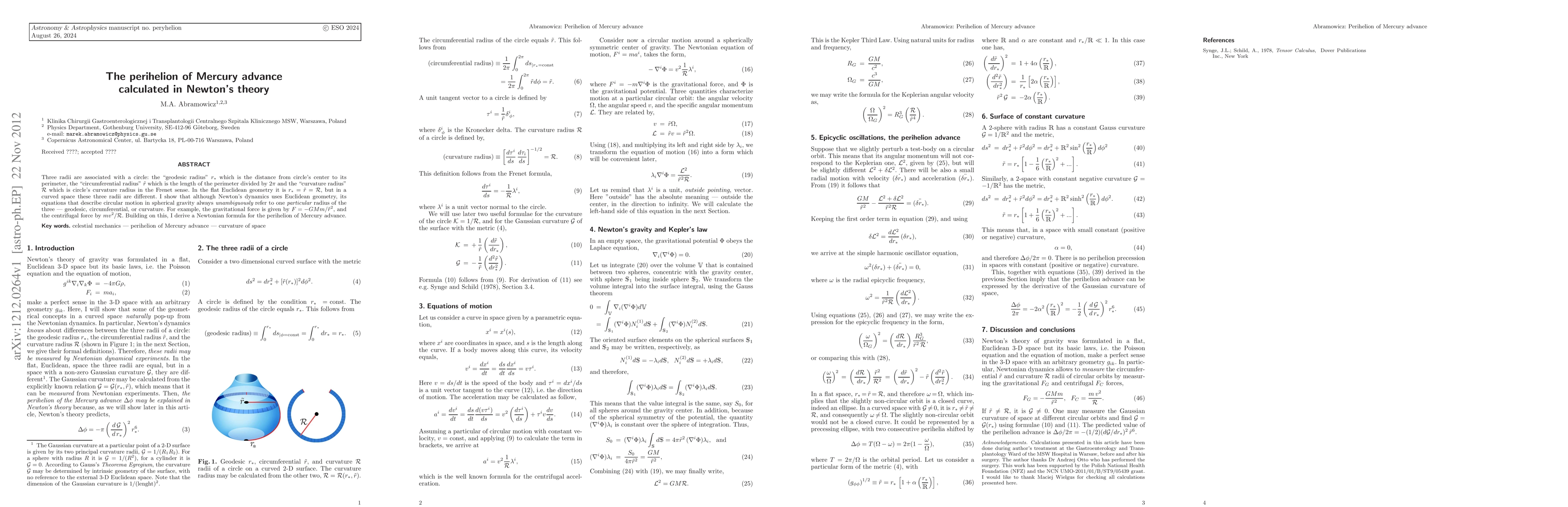 Three radii are associated with a circle: the "geodesic radius" R_1 which is the distance from circle's center to its perimeter, the "circumferential radius" R_2 which is the length of the perimeter divided by 2 pi and the "curvature radius" R_3 which is circle's curvature radius in the Frenet sense. In the flat Euclidean geometry it is R_1 = R_2 = R_3, but in a curved space these three radii are different. I show that although Newton's dynamics uses Euclidean geometry, its equations that describe circular motion in spherical gravity always unambiguously refer to one particular radius of the three --- geodesic, circumferential, or curvature. For example, the gravitational force is given by F = -GMm/(R_2)^2, and the centrifugal force by mv^2/R_3. Building on this, I derive a Newtonian formula for the perihelion of Mercury advance.