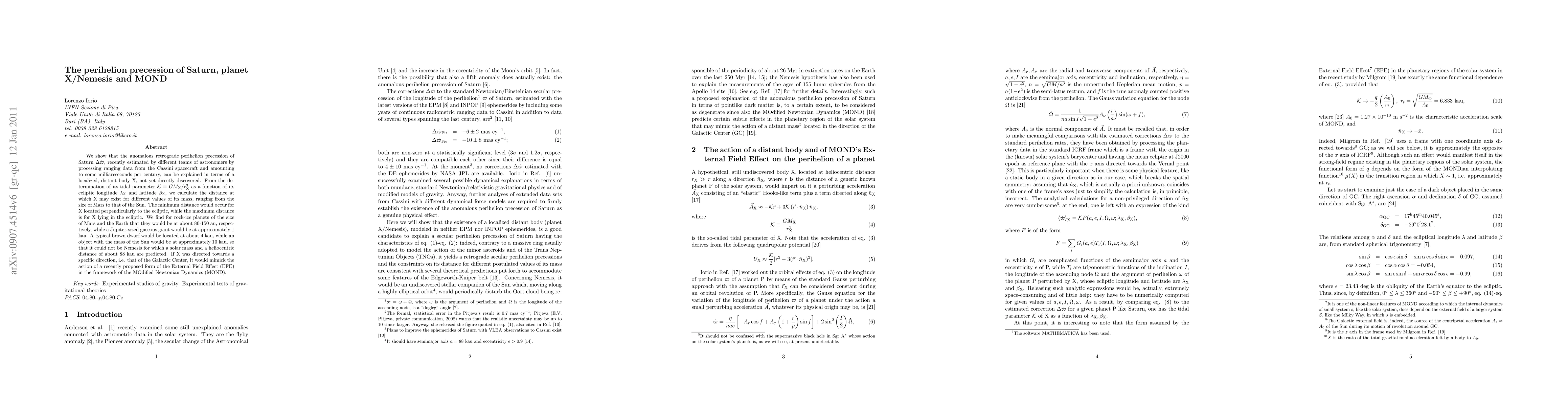 We show that the retrograde perihelion precession of Saturn \Delta\dot\varpi, recently estimated by different teams of astronomers by processing ranging data from the Cassini spacecraft and amounting to some milliarcseconds per century, can be explained in terms of a localized, distant body X, not yet directly discovered. From the determination of its tidal parameter K = GM_X/r_X^3 as a function of its ecliptic longitude \lambda_X and latitude \beta_X, we calculate the distance at which X may exist for different values of its mass, ranging from the size of Mars to that of the Sun. The minimum distance would occur for X located perpendicularly to the ecliptic, while the maximum distance is for X lying in the ecliptic. We find for rock-ice planets of the size of Mars and the Earth that they would be at about 80-150 au, respectively, while a Jupiter-sized gaseous giant would be at approximately 1 kau. A typical brown dwarf would be located at about 4 kau, while an object with the mass of the Sun would be at approximately 10 kau, so that it could not be Nemesis for which a solar mass and a heliocentric distance of about 88 kau are predicted. If X was directed towards a specific direction, i.e. that of the Galactic Center, it would mimick the action of a recently proposed form of the External Field Effect (EFE) in the framework of the MOdified Newtonian Dynamics (MOND).