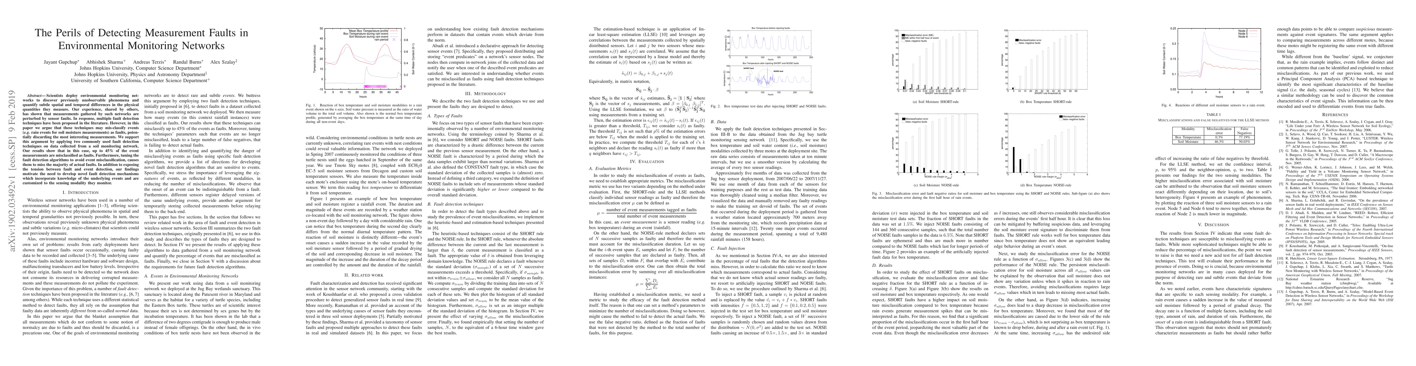 This paper discusses the challenges of detecting measurement faults in environmental monitoring networks, highlighting that existing fault detection techniques often misclassify significant events as faults. The study demonstrates that up to 45% of event measurements can be incorrectly identified, urging the need for new fault detection methods tailored to specific sensing modalities.