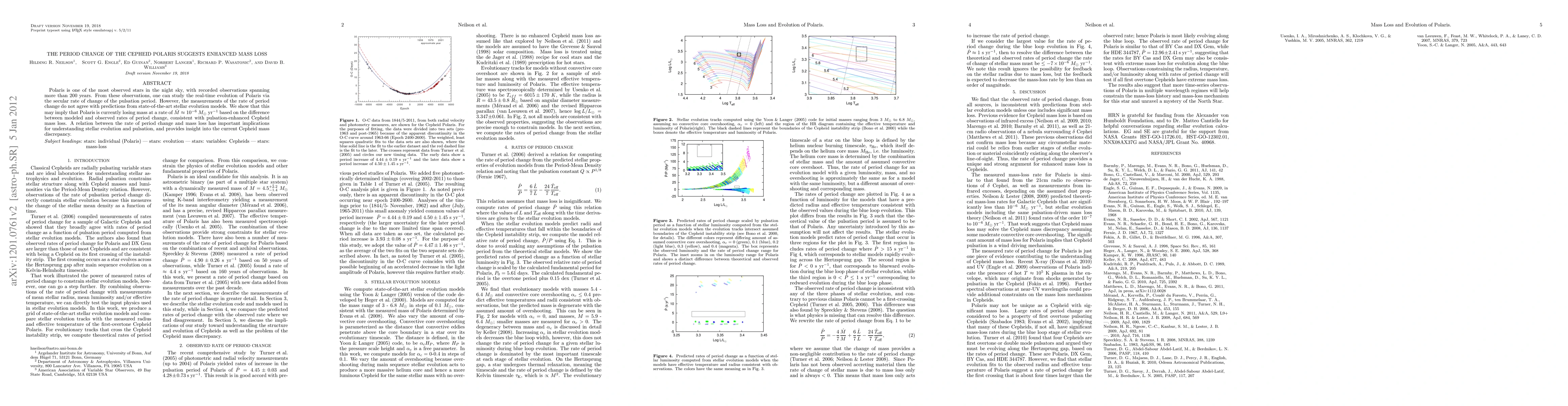 Polaris's observed period change indicates enhanced mass loss, diverging from stellar evolution model predictions, suggesting a mass loss rate of $\dot{M} \approx 10^{-6} M_\odot$ yr$^{-1}$. This discrepancy highlights the need for revised models to account for pulsation-enhanced mass loss in Cepheids.