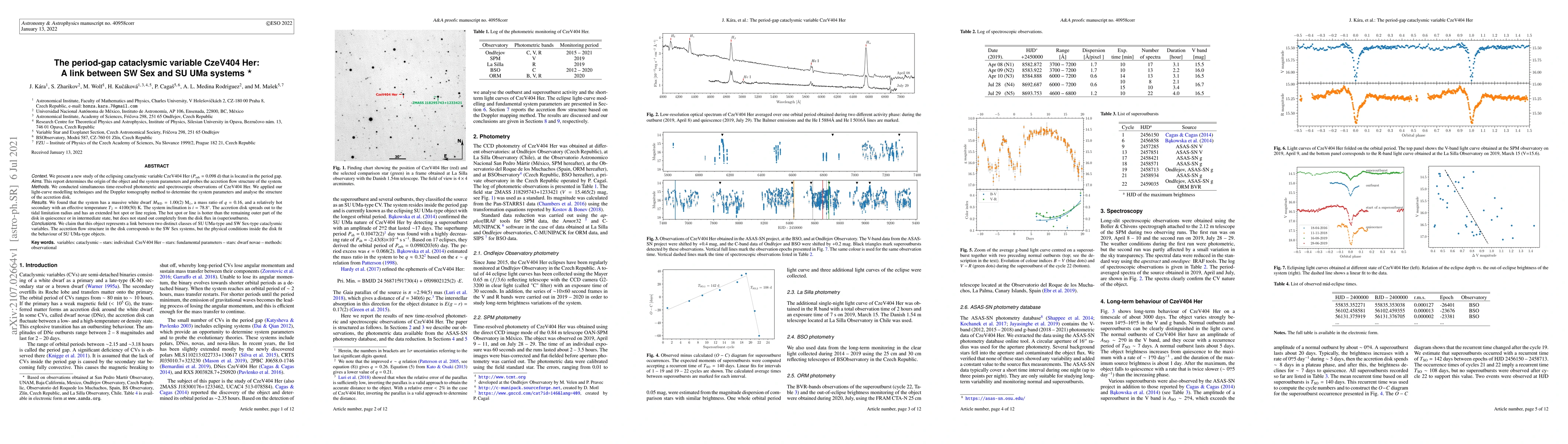 The paper presents a detailed analysis of CzeV404 Her using light-curve modeling and Doppler tomography, providing a link between SU UMa-type and SW Sex-type cataclysmic variables.