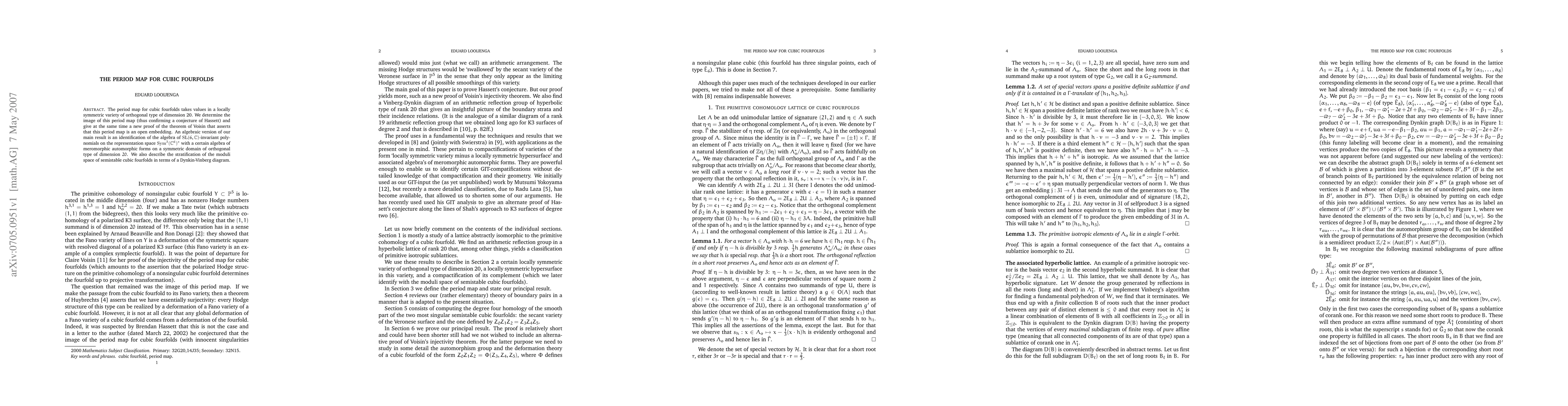The paper confirms Hassett's conjecture by determining the image of the period map for cubic fourfolds, which maps to a 20-dimensional locally symmetric variety. It also provides a new proof of Voisin's theorem that this period map is an open embedding, and connects the algebra of SL(6)-invariant polynomials with a specific algebra of meromorphic automorphic forms.