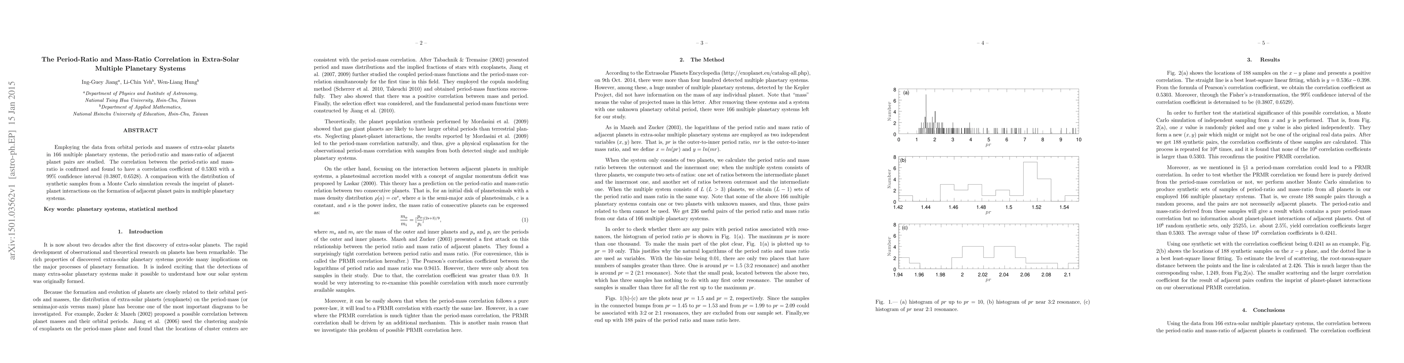 This study investigates the correlation between period-ratio and mass-ratio in 166 extra-solar multiple planetary systems, finding a significant correlation coefficient of 0.5303 (99% CI: 0.3807, 0.6528). The results suggest that planet-planet interactions influence the formation of adjacent planet pairs.