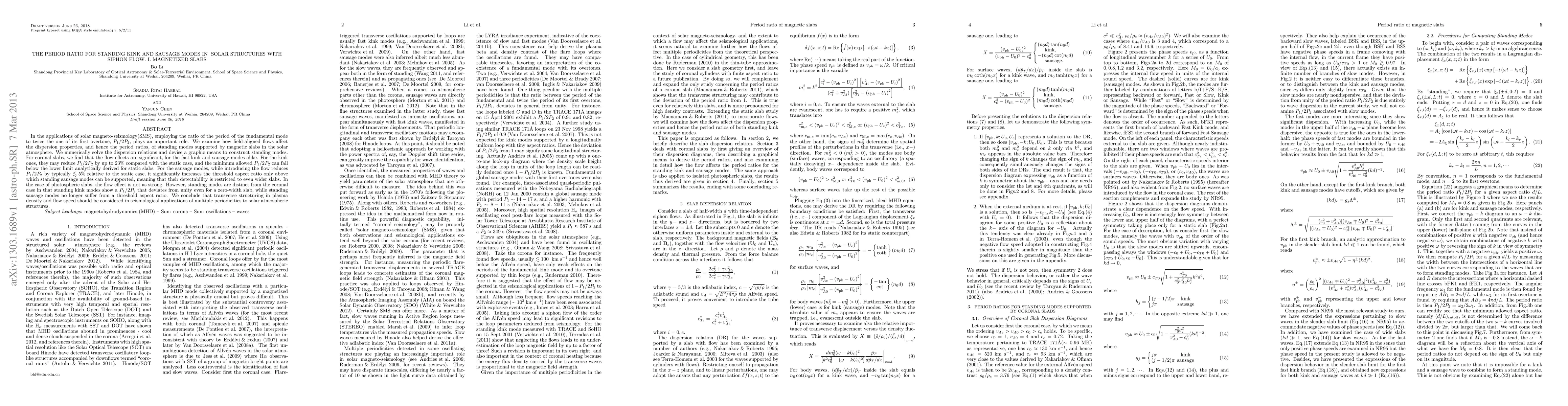 This paper investigates how field-aligned flows impact the period ratios of standing kink and sausage modes in magnetized solar slabs, finding significant flow effects in coronal slabs that alter these ratios and restrict the detectability of sausage modes. Photospheric slabs show less pronounced flow effects, but still exhibit distinct behavior in standing modes.