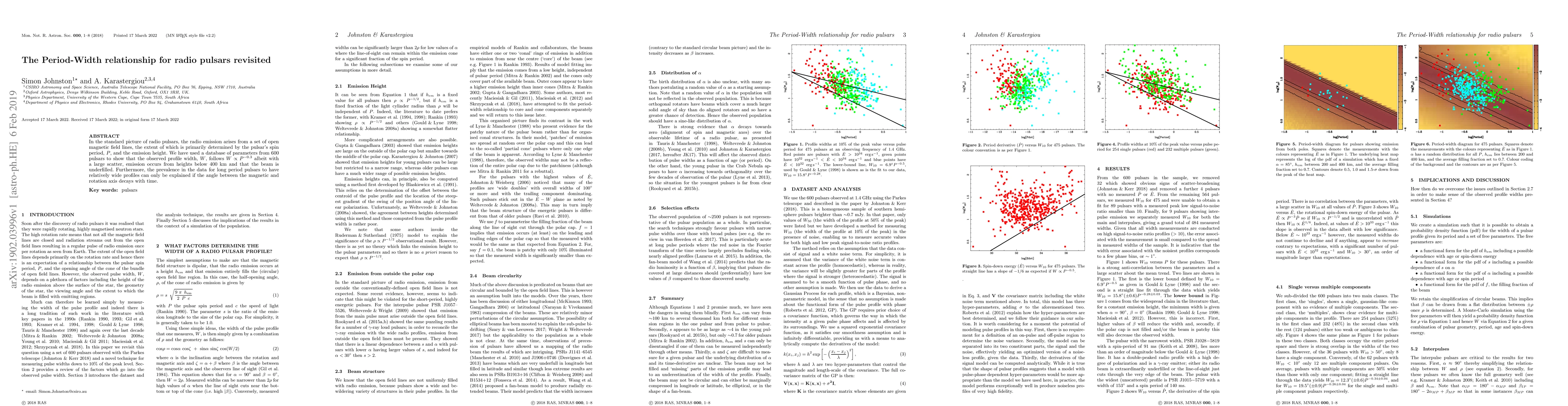 This study revisits the relationship between the period (P) and profile width (W) of radio pulsars, finding that W is proportional to P^-0.3 with significant variability. The analysis of 600 pulsars indicates that emission occurs below 400 km and the beam is underfilled, suggesting that the angle between the magnetic and rotation axes decreases over time for long-period pulsars.