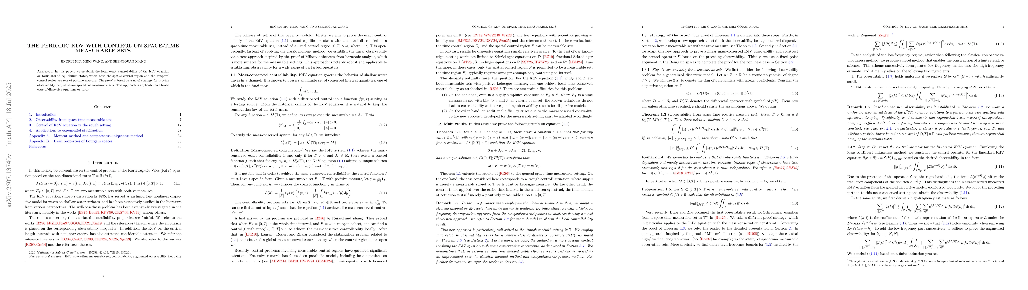 In this paper, we establish the local exact controllability of the KdV equation on torus around equilibrium states, where both the spatial control region and the temporal control region are sets of positive measure. The proof is based on a novel strategy for proving observability inequalities on space-time measurable sets. This approach is applicable to a broad class of dispersive equations on torus.