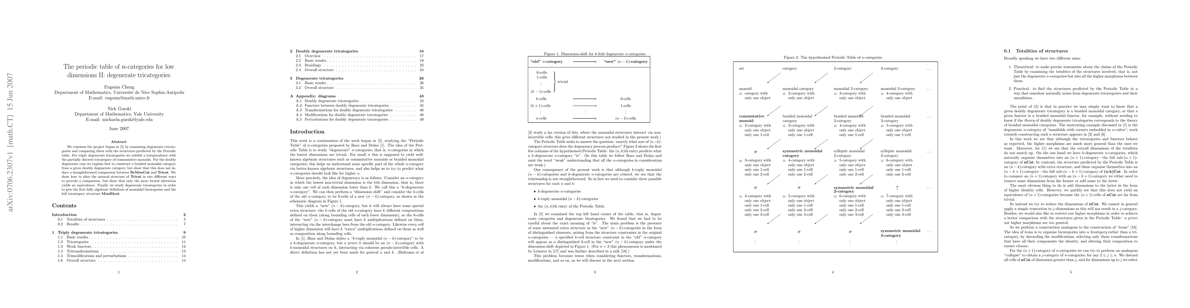 We continue the project begun in ``The periodic table of $n$-categories for low dimensions I'' by examining degenerate tricategories and comparing them with the structures predicted by the Periodic table. For triply degenerate tricategories we exhibit a triequivalence with the partially discrete tricategory of commutative monoids. For the doubly degenerate case we explain how to construct a braided monoidal category from a given doubly degenerate category, but show that this does not induce a straightforward comparison between \bfseries{BrMonCat} and \bfseries{Tricat}. We show how to alter the natural structure of \bfseries{Tricat} in two different ways to provide a comparison, but show that only the more brutal alteration yields an equivalence. Finally we study degenerate tricategories in order to give the first fully algebraic definition of monoidal bicategories and the full tricategory structure \bfseries{MonBicat}.