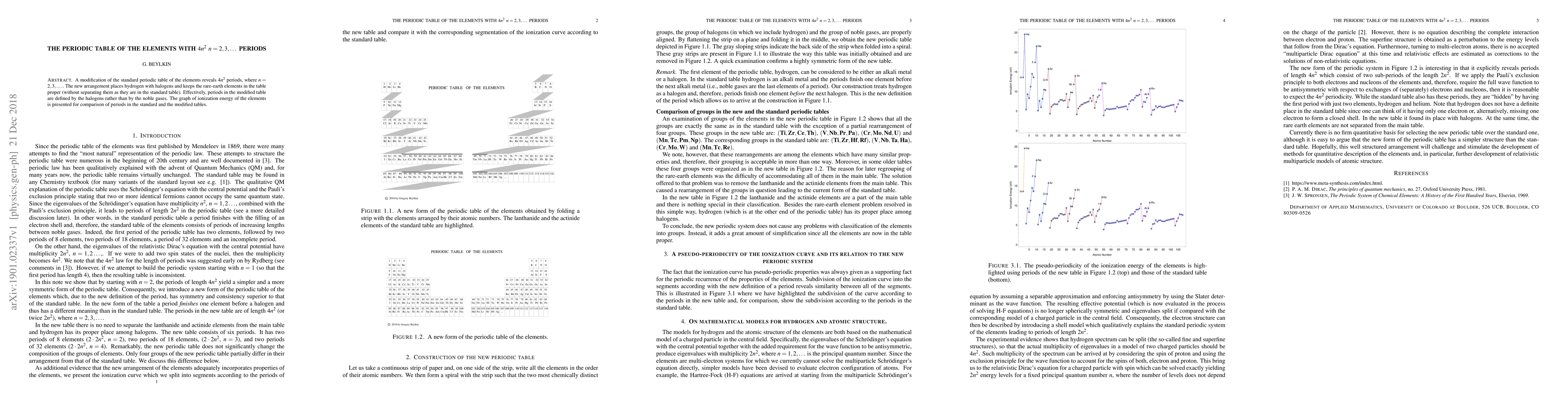 This paper proposes a modified periodic table with $4n^{2}$ periods ($n=2,3,\dots$), positioning hydrogen with halogens and integrating rare-earth elements within the main table. A comparative graph of ionization energy highlights differences between the standard and the new table's period definitions.