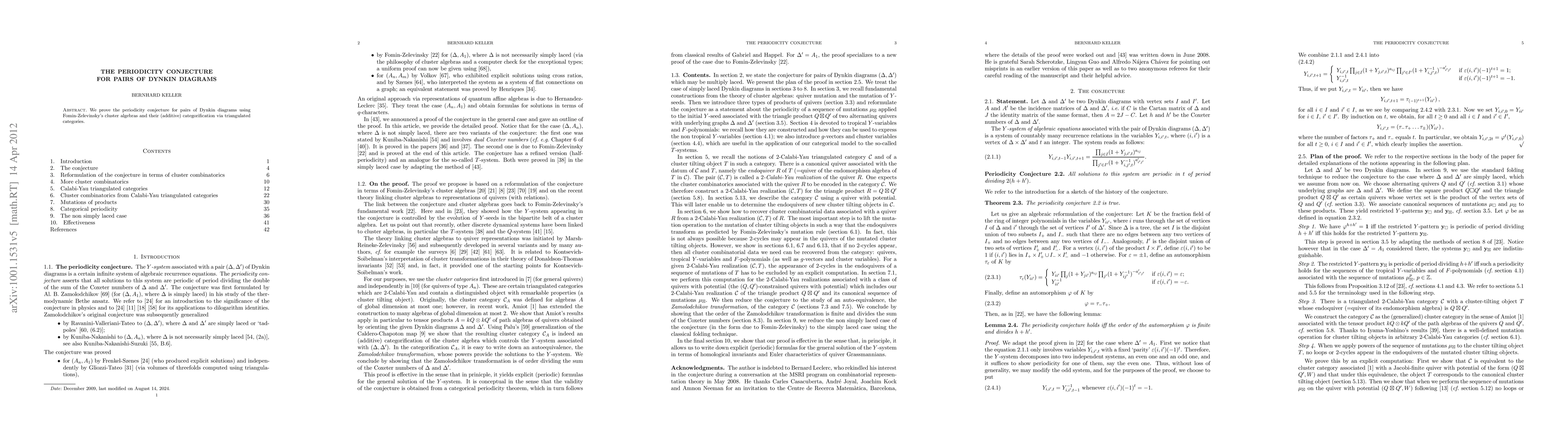 This paper proves the periodicity conjecture for pairs of Dynkin diagrams by leveraging Fomin-Zelevinsky's cluster algebras and their categorification through triangulated categories. The result deepens understanding of the underlying periodic structures in representation theory.