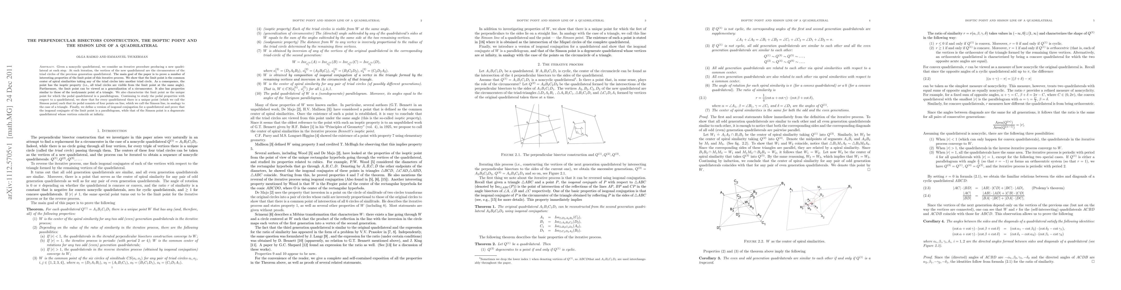 Given a noncyclic quadrilateral, we consider an iterative procedure producing a new quadrilateral at each step. At each iteration, the vertices of the new quadrilateral are the circumcenters of the triad circles of the previous generation quadrilateral. The main goal of the paper is to prove a number of interesting properties of the limit point of this iterative process. We show that the limit point is the common center of spiral similarities taking any of the triad circles into another triad circle. As a consequence, the point has the isoptic property (i.e., all triad circles are visible from the limit point at the same angle). Furthermore, the limit point can be viewed as a generalization of a circumcenter. It also has properties similar to those of the isodynamic point of a triangle. We also characterize the limit point as the unique point for which the pedal quadrilateral is a parallelogram. Continuing to study the pedal properties with respect to a quadrilateral, we show that for every quadrilateral there is a unique point (which we call the Simson point) such that its pedal consists of four points on line, which we call the Simson line, in analogy to the case of a triangle. Finally, we define a version of isogonal conjugation for a quadrilateral and prove that the isogonal conjugate of the limit point is a parallelogram, while that of the Simson point is a degenerate quadrilateral whose vertices coincide at infinity.