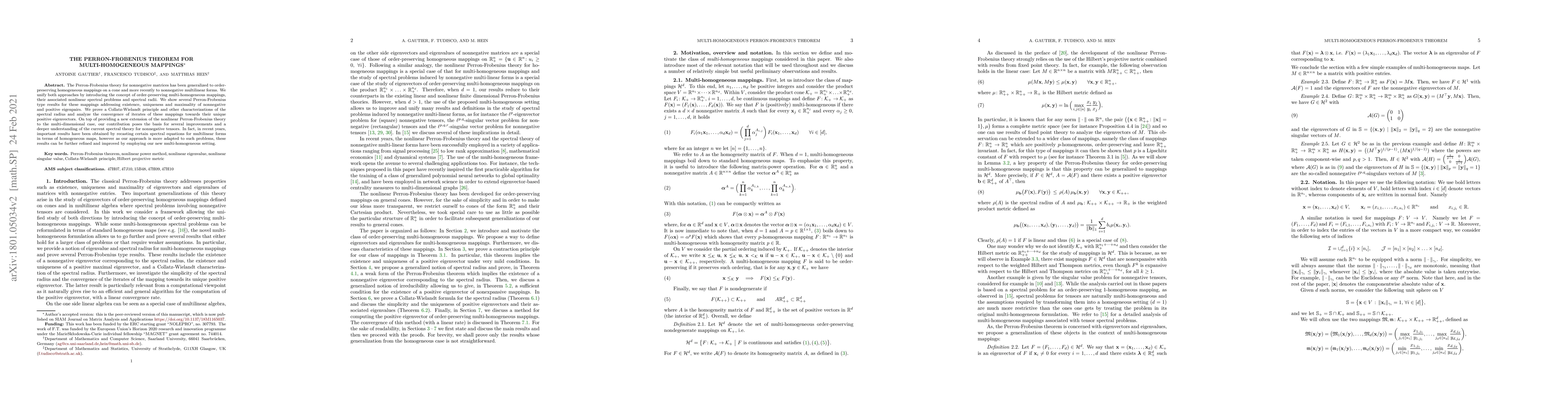 This paper extends the Perron-Frobenius theorem to order-preserving multi-homogeneous mappings, establishing existence, uniqueness, and maximality of nonnegative and positive eigenpairs. It introduces a new framework for spectral radii and nonlinear spectral problems, providing deeper insights into the spectral theory for nonnegative tensors.