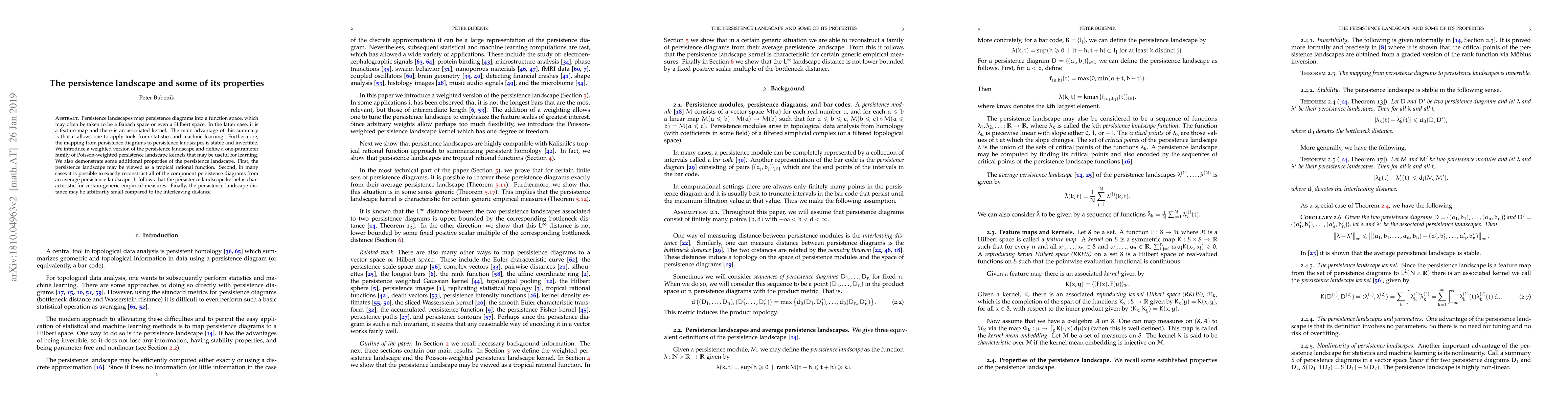 Researchers introduced a concept called persistence landscapes to map persistence diagrams into function spaces, allowing for statistical and machine learning applications. The study also explored properties of the landscape, including its stability, invertibility, and potential use in reconstructing component persistence diagrams.