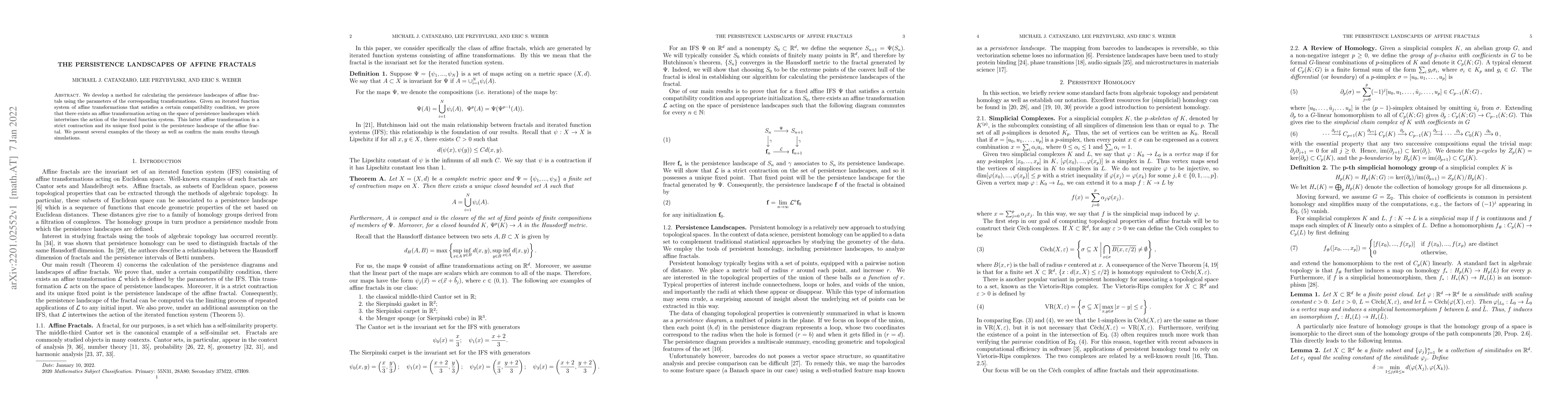 This research develops a method for determining the persistence landscapes of affine fractals using transformation parameters. It demonstrates that an affine transformation exists which intertwines the action of an iterated function system, with its unique fixed point representing the persistence landscape of the fractal, confirmed through examples and simulations.