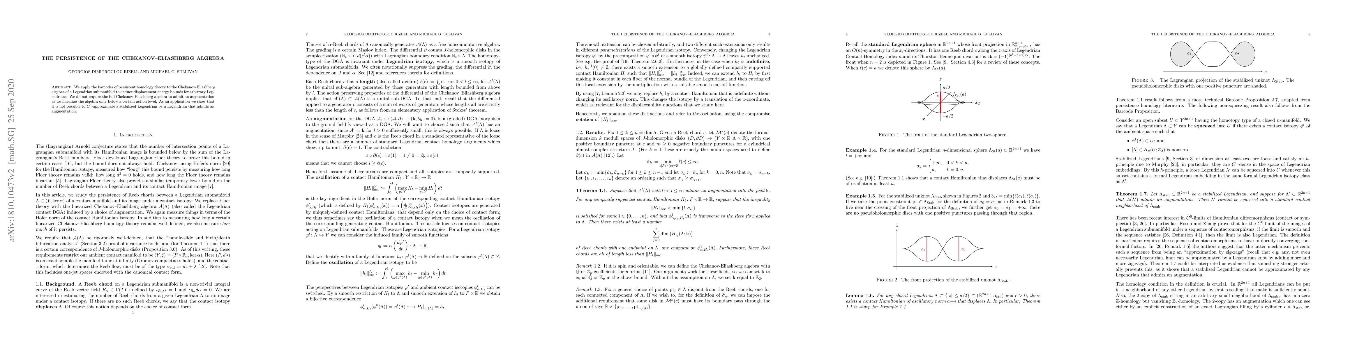 Summary: This paper uses persistent homology to analyze the Chekanov-Eliashberg algebra of Legendrian submanifolds, providing displacement energy bounds without requiring augmentation, and demonstrates the impossibility of $C^0$-approximating stabilized Legendrians with augmentations.