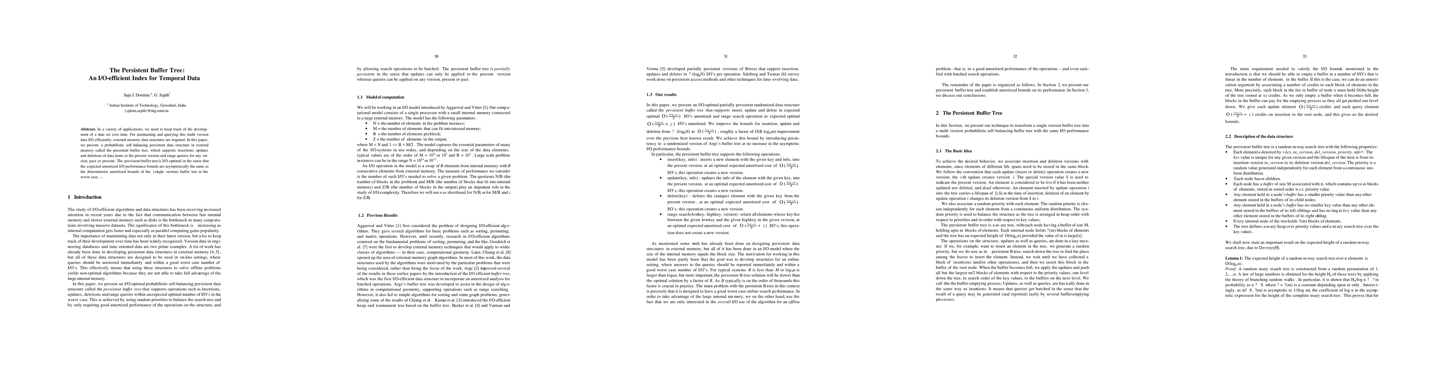 This paper introduces the persistent buffer tree, an I/O-efficient index for temporal data that supports insertions, updates, deletions, and range queries across multiple versions. It achieves optimal I/O performance comparable to the buffer tree in single-version scenarios.