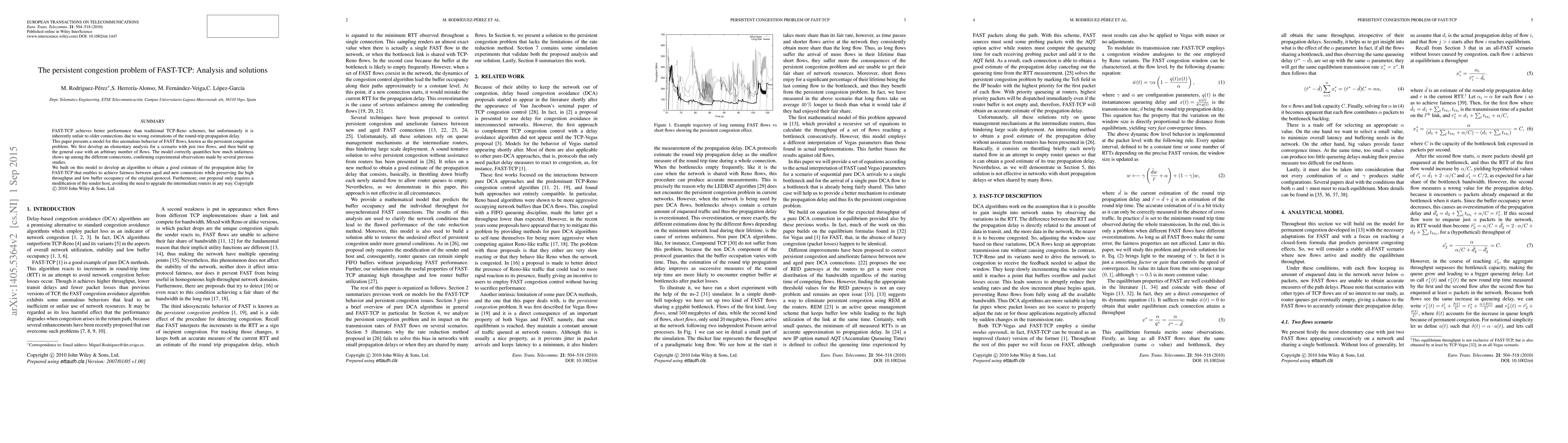 A new model analyzes how FAST-TCP prioritizes older connections unfairly due to incorrect delay estimates, leading to a congestion problem; a proposed algorithm addresses this issue without requiring router upgrades.