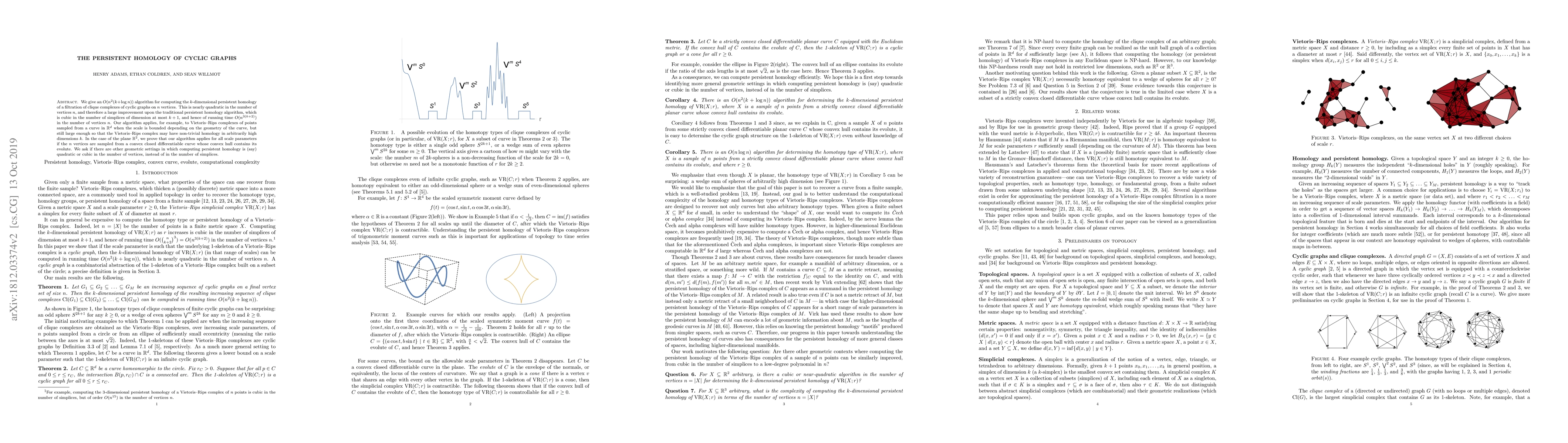 We give an $O(n^2(k+\log n))$ algorithm for computing the $k$-dimensional persistent homology of a filtration of clique complexes of cyclic graphs on $n$ vertices. This is nearly quadratic in the number of vertices $n$, and therefore a large improvement upon the traditional persistent homology algorithm, which is cubic in the number of simplices of dimension at most $k+1$, and hence of running time $O(n^{3(k+2)})$ in the number of vertices $n$. Our algorithm applies, for example, to Vietoris--Rips complexes of points sampled from a curve in $\mathbb{R}^d$ when the scale is bounded depending on the geometry of the curve, but still large enough so that the Vietoris--Rips complex may have non-trivial homology in arbitrarily high dimensions $k$. In the case of the plane $\mathbb{R}^2$, we prove that our algorithm applies for all scale parameters if the $n$ vertices are sampled from a convex closed differentiable curve whose convex hull contains its evolute. We ask if there are other geometric settings in which computing persistent homology is (say) quadratic or cubic in the number of vertices, instead of in the number of simplices.