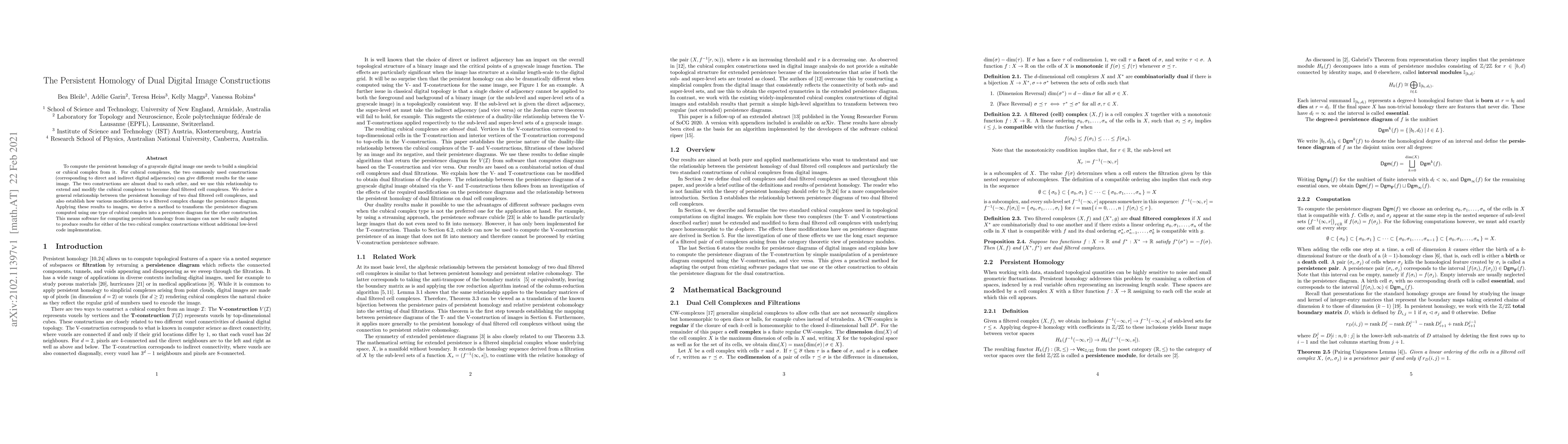 To compute the persistent homology of a grayscale digital image one needs to build a simplicial or cubical complex from it. For cubical complexes, the two commonly used constructions (corresponding to direct and indirect digital adjacencies) can give different results for the same image. The two constructions are almost dual to each other, and we use this relationship to extend and modify the cubical complexes to become dual filtered cell complexes. We derive a general relationship between the persistent homology of two dual filtered cell complexes, and also establish how various modifications to a filtered complex change the persistence diagram. Applying these results to images, we derive a method to transform the persistence diagram computed using one type of cubical complex into a persistence diagram for the other construction. This means software for computing persistent homology from images can now be easily adapted to produce results for either of the two cubical complex constructions without additional low-level code implementation.