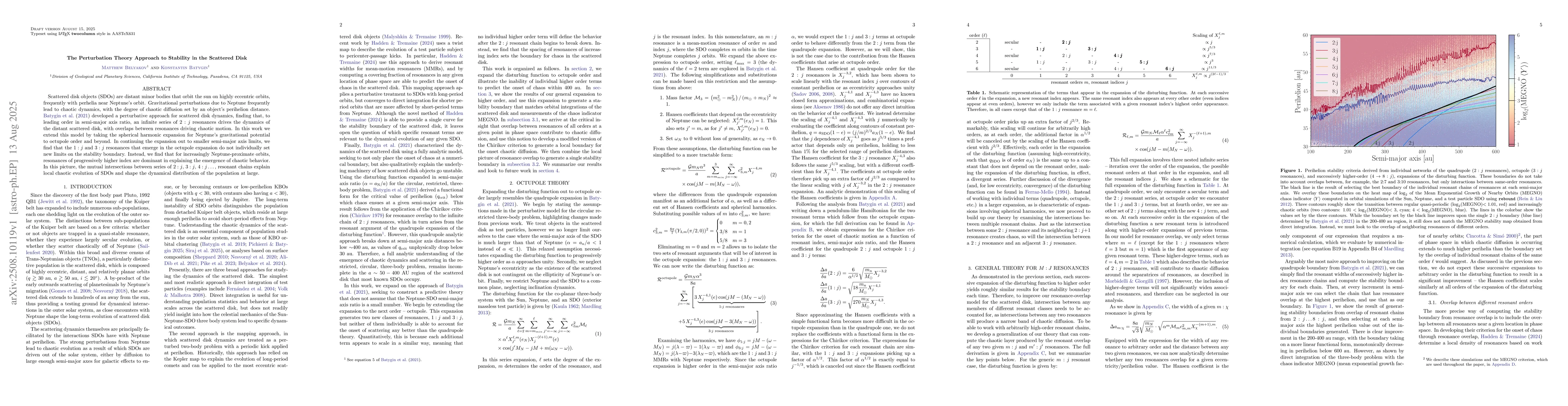 Scattered disk objects (SDOs) are distant minor bodies that orbit the sun on highly eccentric orbits, frequently with perhelia near Neptune's orbit. Gravitational perturbations due to Neptune frequently lead to chaotic dynamics, with the degree of chaotic diffusion set by an object's perihelion distance. Batygin et al. (2021) developed a perturbative approach for scattered disk dynamics, finding that, to leading order in semi-major axis ratio, an infinite series of $2:j$ resonances drives the dynamics of the distant scattered disk, with overlaps between resonances driving chaotic motion. In this work we extend this model by taking the spherical harmonic expansion for Neptune's gravitational potential to octupole order and beyond. In continuing the expansion out to smaller semi-major axis limits, we find that the $1:j$ and $3:j$ resonances that emerge in the octupole expansion do not individually set new limits on the stability boundary. Instead, we find that for increasingly Neptune-proximate orbits, resonances of progressively higher index are dominant in explaining the emergence of chaotic behavior. In this picture, the mutual intersections between series of $2:j$, $3:j$, $4:j \dots,$ resonant chains explain local chaotic evolution of SDOs and shape the dynamical distribution of the population at large.