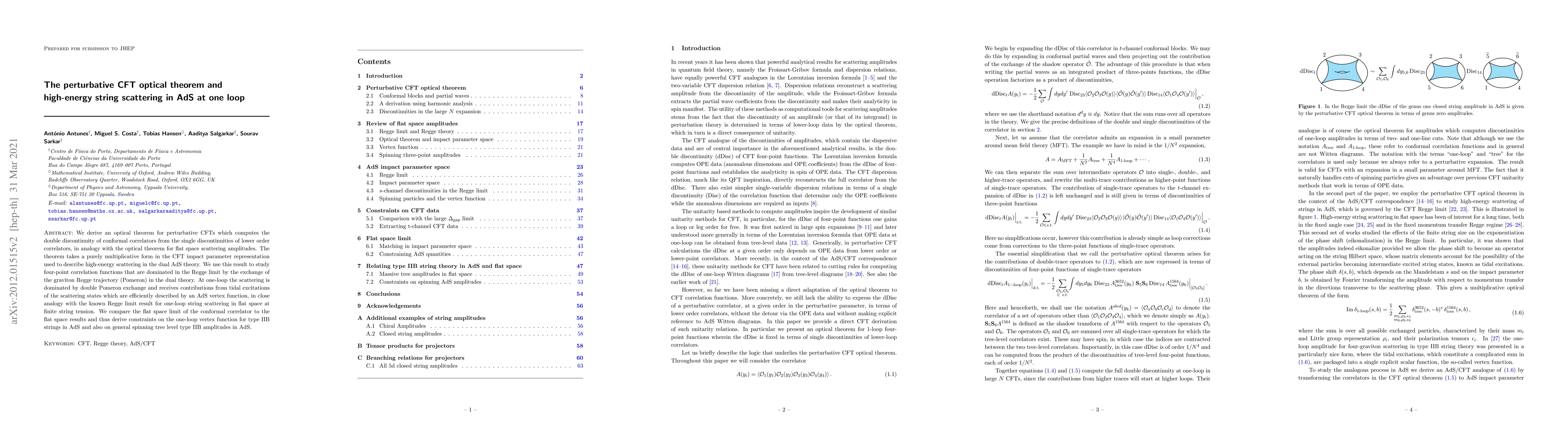 This paper derives an optical theorem for perturbative conformal field theories (CFT) that relates double discontinuities in correlators to single discontinuities in lower-order correlators, analogous to the optical theorem for flat space scattering amplitudes. It applies this theorem to study high-energy string scattering in AdS at one loop, revealing dominance by double Pomeron exchange and deriving constraints on the one-loop vertex function for type IIB strings in AdS.