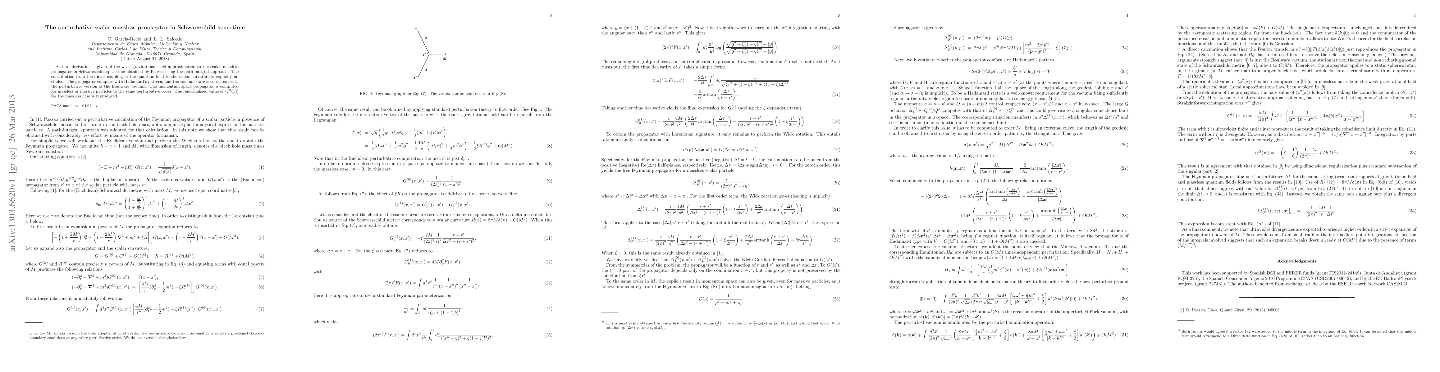 A short derivation is given of the weak gravitational field approximation to the scalar massless propagator in Schwarzschild spacetime obtained by Paszko using the path-integral approach. The contribution from the direct coupling of the quantum field to the scalar curvature is explictly included. The propagator complies with Hadamard's pattern, and the vacuum state is consistent with the perturbative version of the Boulware vacuum. The momentum space propagator is computed for massless or massive particles to the same perturbative order. The renormalized value of $\ < \phi^2(x)\ >$ for the massless case is reproduced.