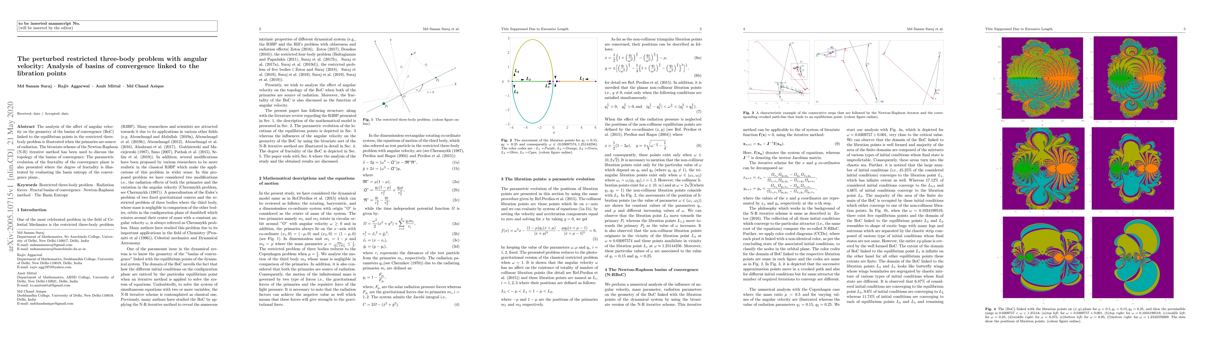 This paper explores how angular velocity affects the geometry of basins of convergence related to equilibrium points in the perturbed restricted three-body problem, with a focus on the radiation from the primaries. The study employs the Newton-Raphson method to analyze the topology and presents the fractality of these basins through basin entropy.