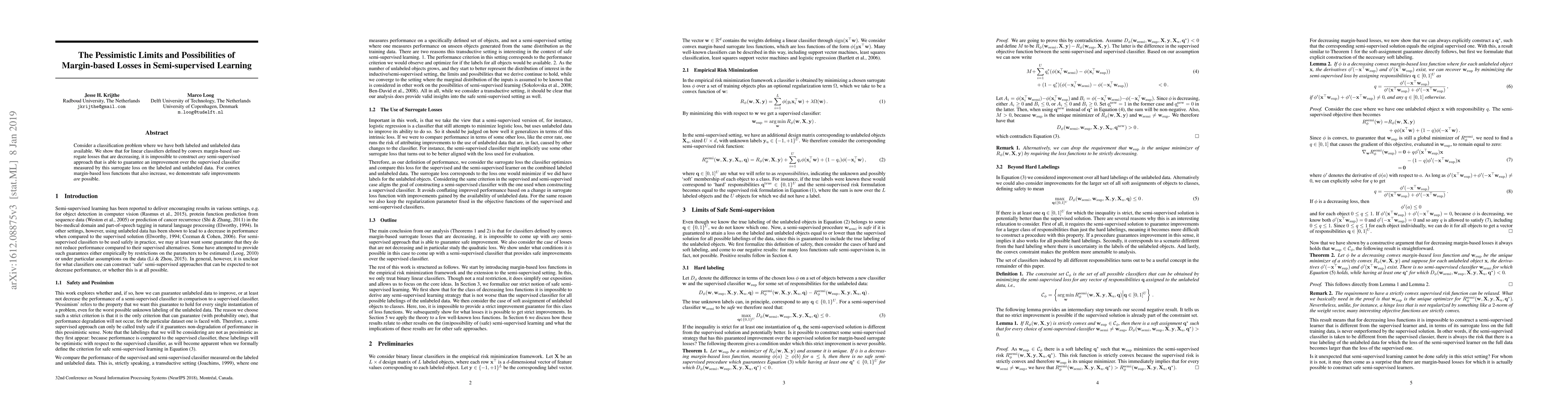 Consider a classification problem where we have both labeled and unlabeled data available. We show that for linear classifiers defined by convex margin-based surrogate losses that are decreasing, it is impossible to construct any semi-supervised approach that is able to guarantee an improvement over the supervised classifier measured by this surrogate loss on the labeled and unlabeled data. For convex margin-based loss functions that also increase, we demonstrate safe improvements are possible.