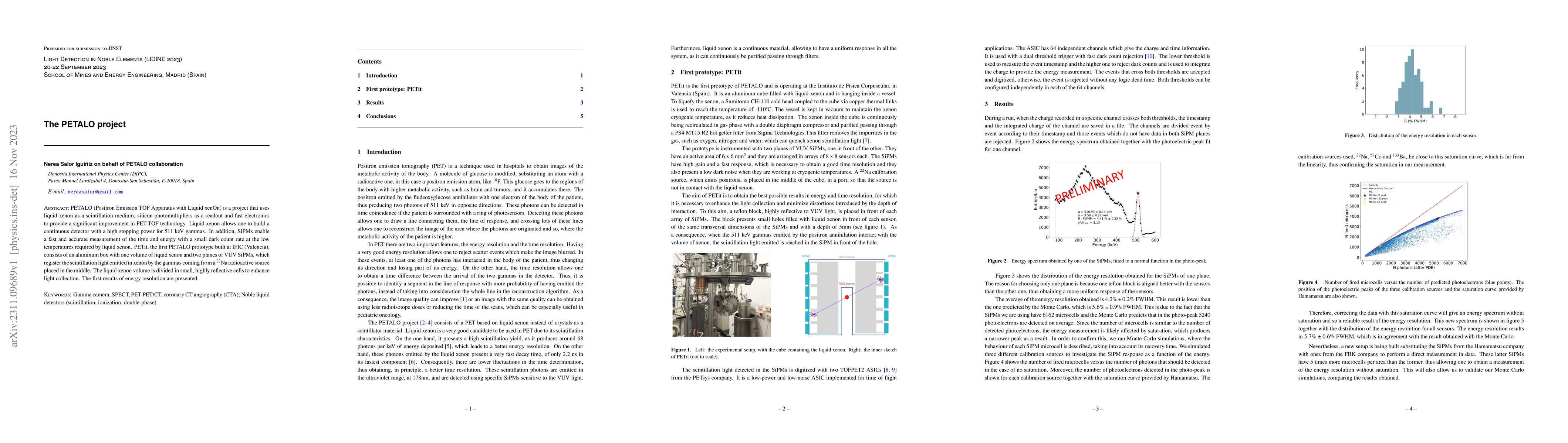PETALO is a project enhancing PET-TOF technology using liquid xenon and silicon photomultipliers for improved detection of 511 keV gammas. Initial prototype PETit demonstrates promising energy resolution results.