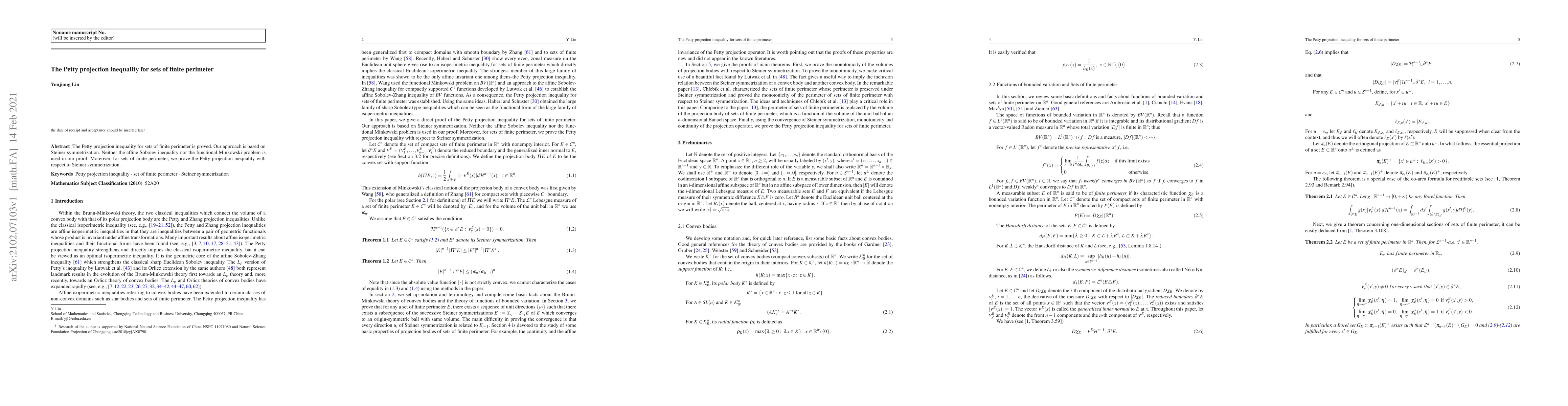 The paper proves the Petty projection inequality for sets of finite perimeter using Steiner symmetrization, without relying on the affine Sobolev inequality or the functional Minkowski problem. Additionally, the authors establish the Petty projection inequality concerning Steiner symmetrization for sets of finite perimeter.