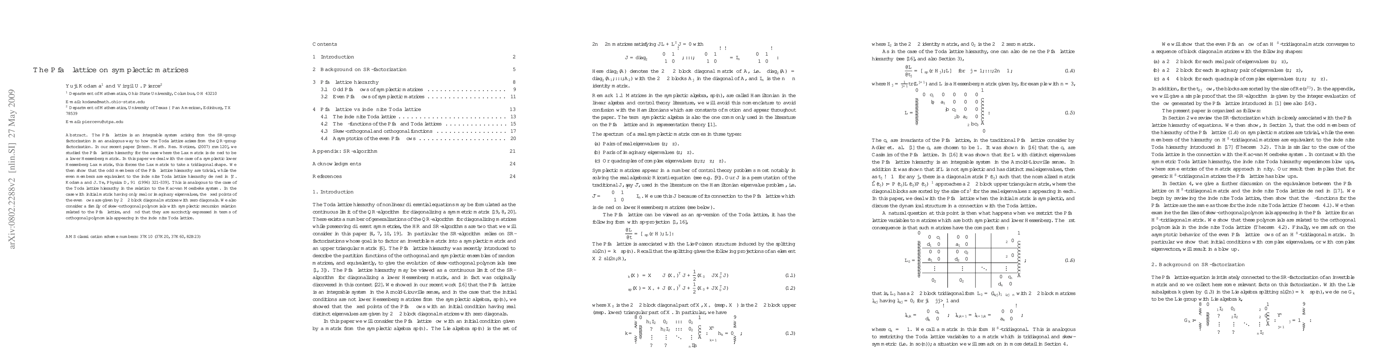 The Pfaff lattice is an integrable system arising from the SR-group factorization in an analogous way to how the Toda lattice arises from the QR-group factorization. In our recent paper [{\it Intern. Math. Res. Notices}, (2007) rnm120], we studied the Pfaff lattice hierarchy for the case where the Lax matrix is defined to be a lower Hessenberg matrix. In this paper we deal with the case of a symplectic lower Hessenberg Lax matrix, this forces the Lax matrix to take a tridiagonal shape. We then show that the odd members of the Pfaff lattice hierarchy are trivial, while the even members are equivalent to the indefinite Toda lattice hierarchy defined in [Y. Kodama and J. Ye, {\it Physica D}, {\bf 91} (1996) 321-339]. This is analogous to the case of the Toda lattice hierarchy in the relation to the Kac-van Moerbeke system. In the case with initial matrix having only real or imaginary eigenvalues, the fixed points of the even flows are given by $2\times 2$ block diagonal matrices with zero diagonals. We also consider a family of skew-orthogonal polynomials with symplectic recursion relation related to the Pfaff lattice, and find that they are succinctly expressed in terms of orthogonal polynomials appearing in the indefinite Toda lattice.