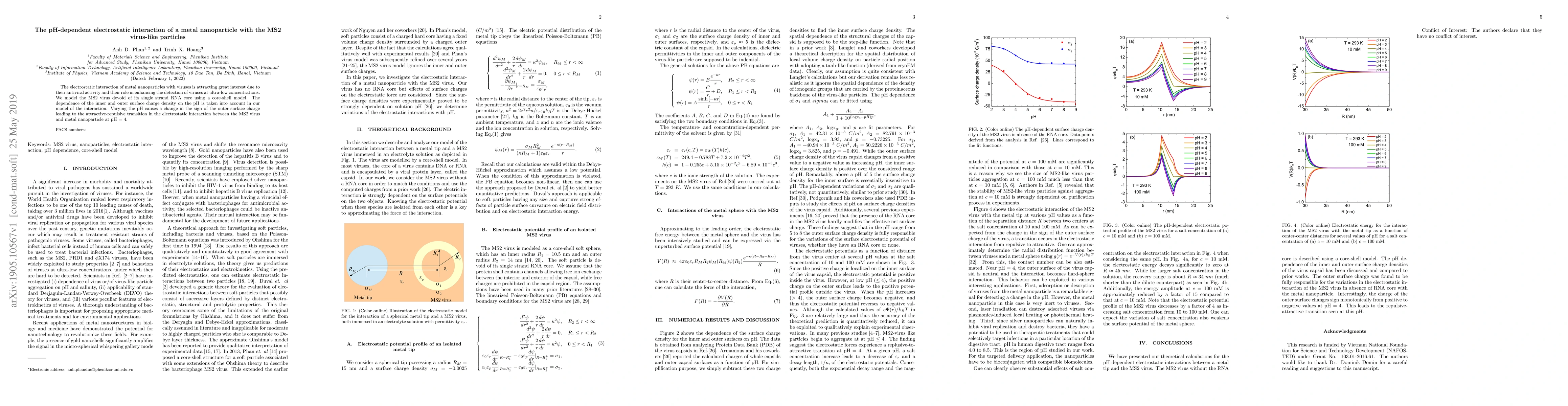 This study investigates the pH-dependent electrostatic interaction between metal nanoparticles and MS2 virus-like particles, revealing that varying pH alters the surface charge, causing an attractive-repulsive transition in the interaction at pH = 4. The MS2 virus is modeled using a core-shell approach, highlighting the significance of pH on nanoparticle-virus interactions.