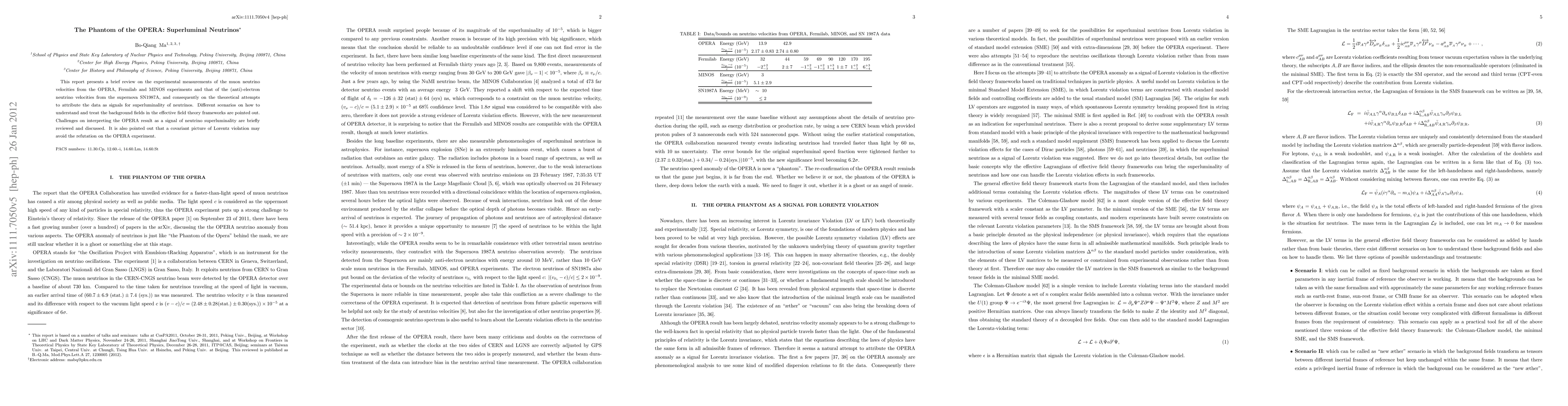 This report presents a brief review on the experimental measurements of the muon neutrino velocities from the OPERA, Fermilab and MINOS experiments and that of the (anti)-electron neutrino velocities from the supernova SN1987A, and consequently on the theoretical attempts to attribute the data as signals for superluminality of neutrinos. Different scenarios on how to understand and treat the background fields in the effective field theory frameworks are pointed out. Challenges on interpreting the OPERA result as a signal of neutrino superluminality are briefly reviewed and discussed. It is also pointed out that a covariant picture of Lorentz violation may avoid the refutation on the OPERA experiment.