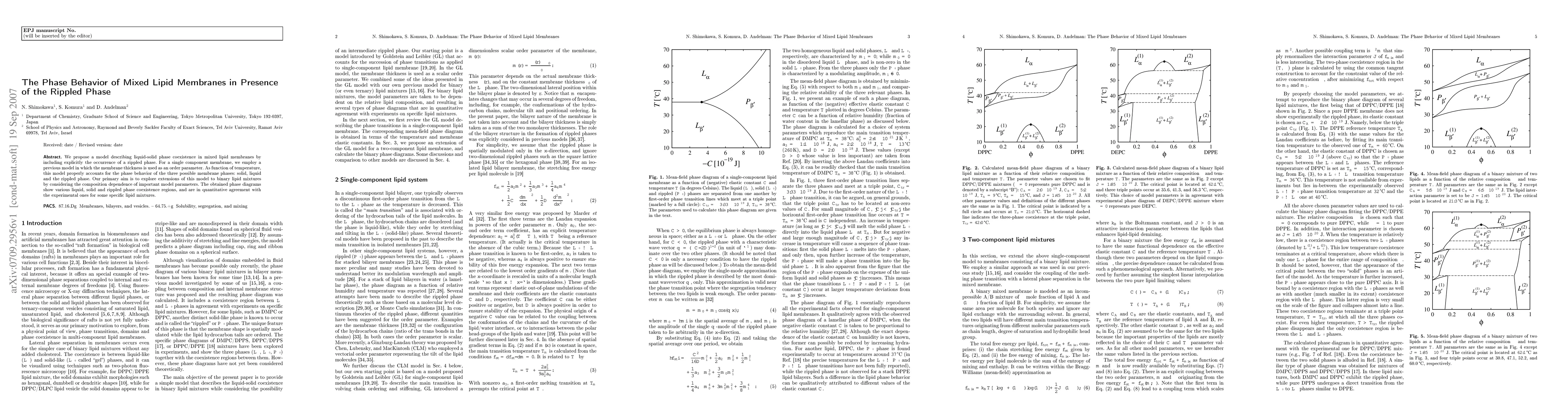 This paper proposes a model to describe the liquid-solid phase coexistence in mixed lipid membranes, incorporating the rippled phase. The model extends previous work to binary lipid mixtures, showing various phase coexistence regions that match experimental data.