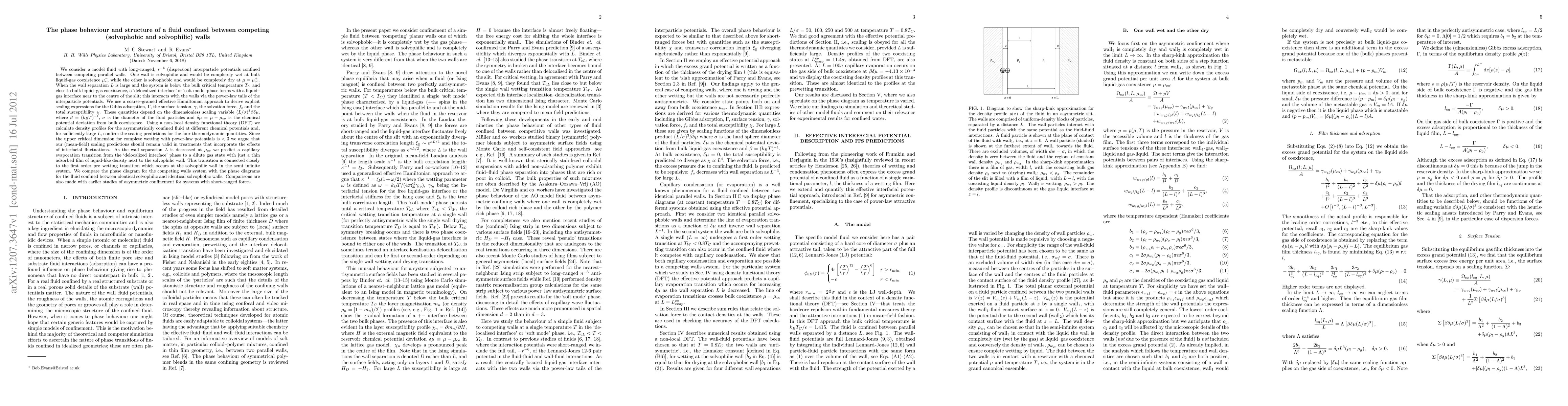 This paper investigates the phase behavior of a fluid confined between a solvophilic and a solvophobic wall using a coarse-grained effective Hamiltonian and non-local density functional theory. It predicts a "delocalized interface" phase and capillary evaporation transition, comparing these findings with systems having identical wall types.