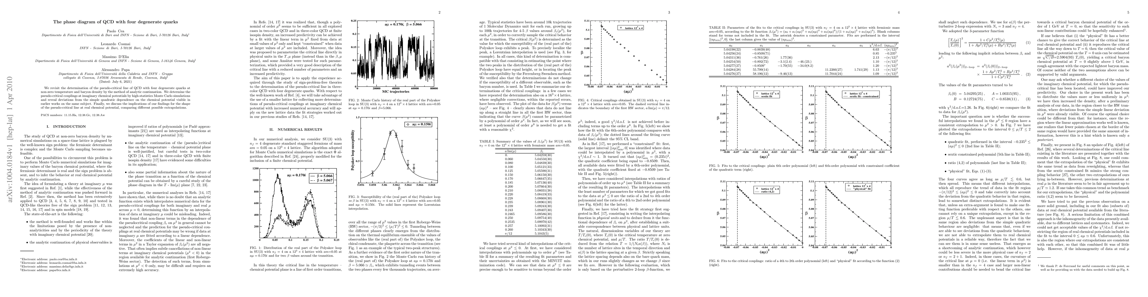 Researchers re-examined the phase diagram of QCD with four degenerate quarks using Monte Carlo simulations, revealing deviations from a simple quadratic dependence on chemical potential, which affects understanding of the pseudo-critical line at real chemical potential.
