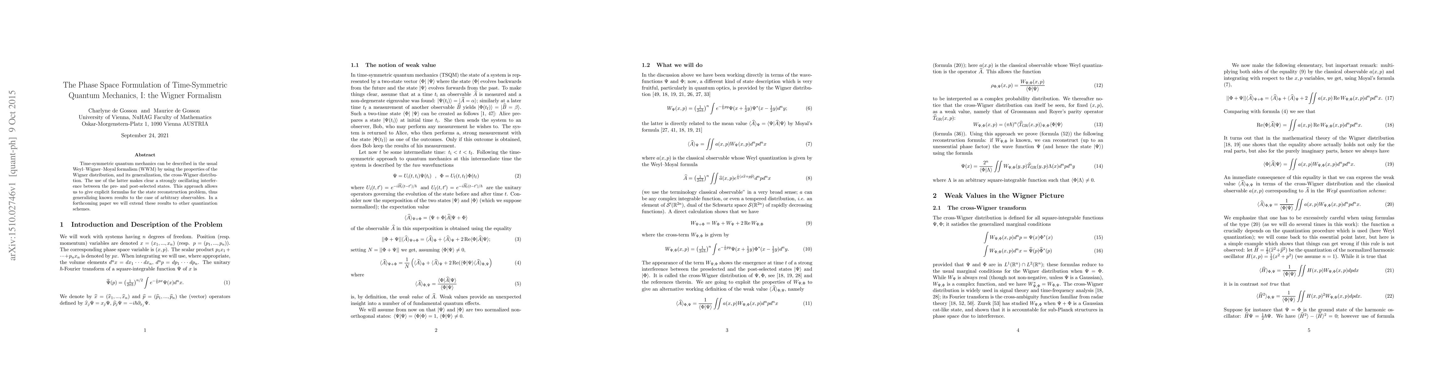 Researchers used the Wigner distribution and its generalization to describe time-symmetric quantum mechanics, revealing a strongly oscillating interference between pre- and post-selected states in an explicit formula for state reconstruction.