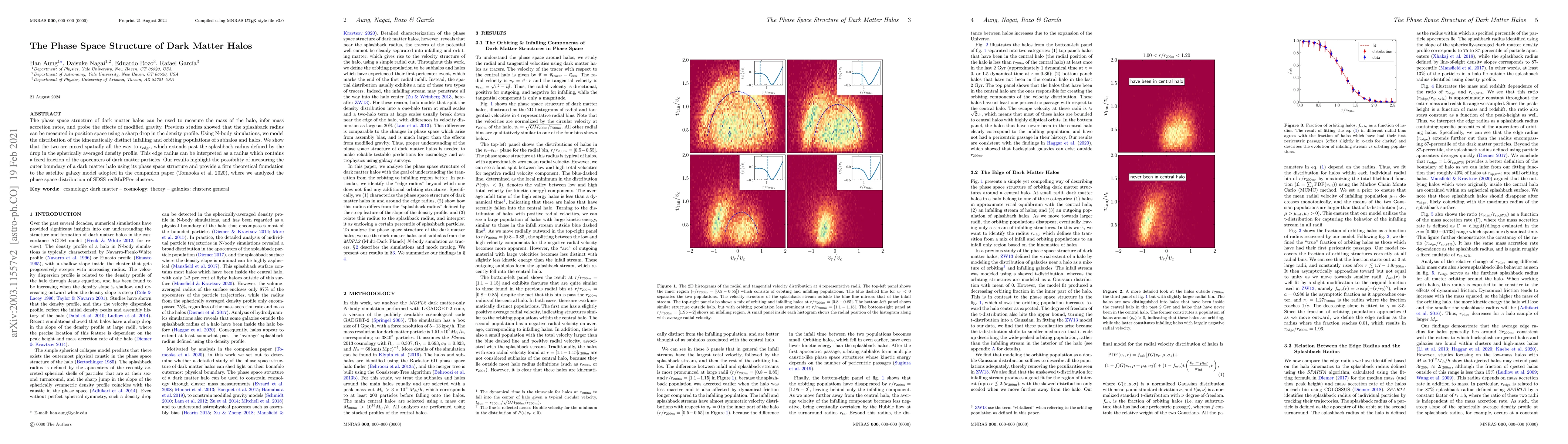 This paper investigates the phase space structure of dark matter halos, revealing that the halo's phase space does not end at the previously defined splashback radius. Instead, it identifies an "edge radius" beyond which no orbiting substructures exist, providing a theoretical foundation for satellite galaxy models.