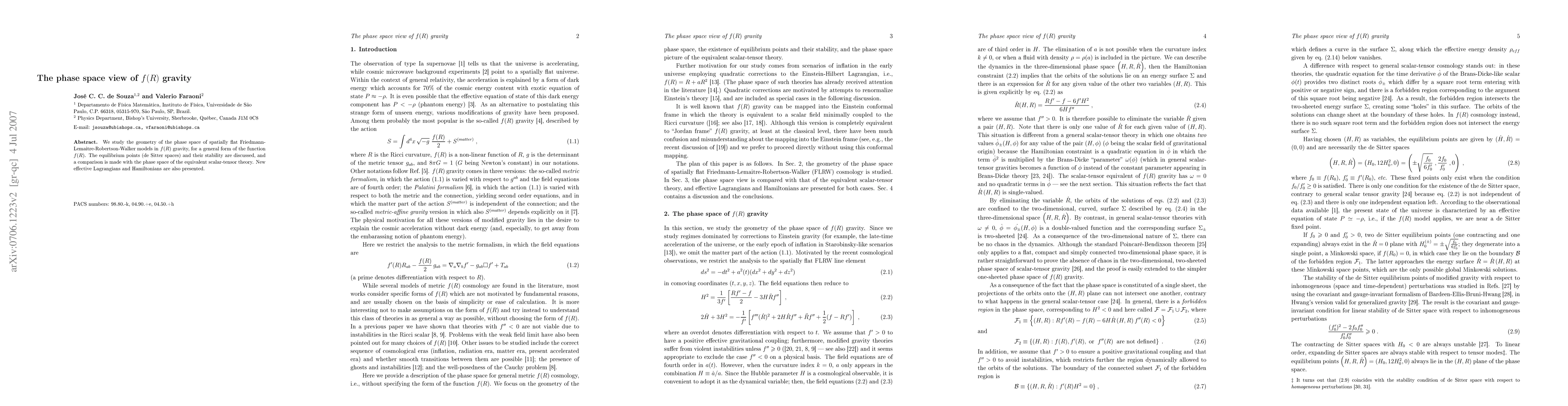 This paper studies the geometry of phase space in f(R) gravity, focusing on equilibrium points and stability, with implications for scalar-tensor theory and new effective Lagrangians.