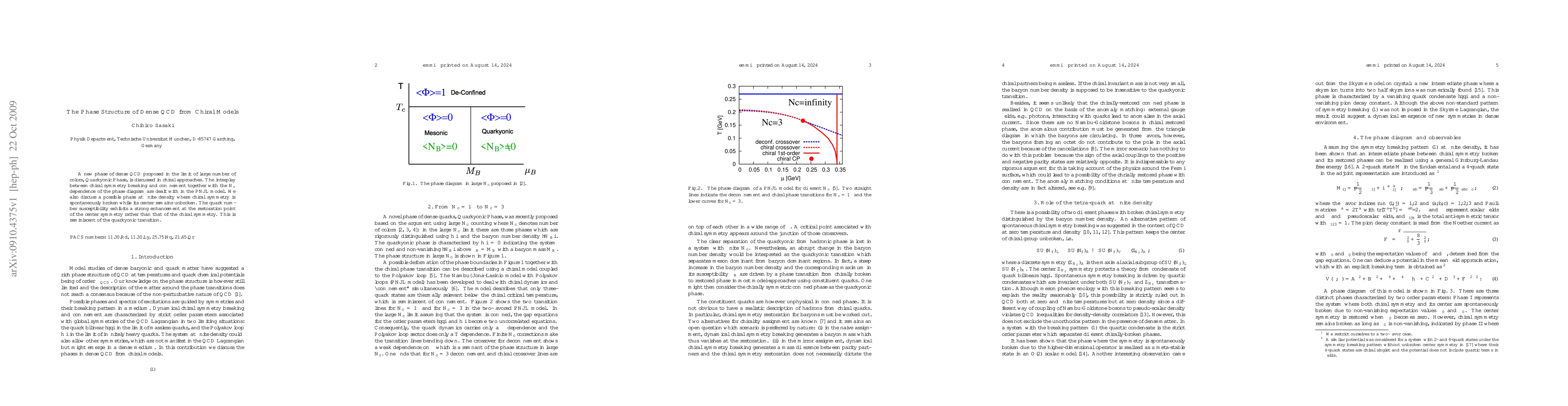 A new phase of dense QCD proposed in the limit of large number of colors, Quarkyonic Phase, is discussed in chiral approaches. The interplay between chiral symmetry breaking and confinement together with the $N_c$ dependence of the phase diagram are dealt with in the PNJL model. We also discuss a possible phase at finite density where chiral symmetry is spontaneously broken while its center remains unbroken. The quark number susceptibility exhibits a strong enhancement at the restoration point of the center symmetry rather than that of the chiral symmetry. This is reminiscent of the quarkyonic transition.