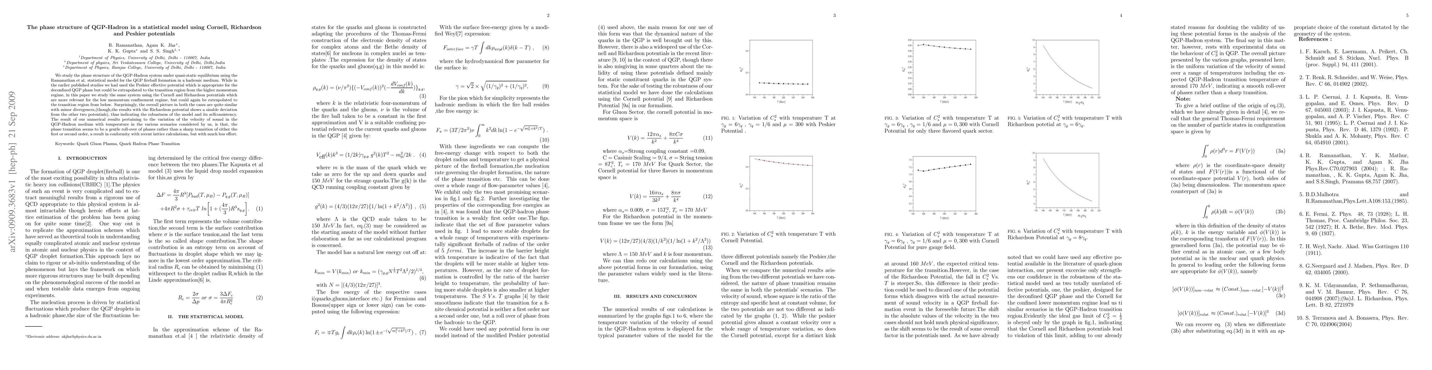 This paper investigates the phase structure of the QGP-Hadron system using the Ramanathan statistical model and Cornell, Richardson, and Peshier potentials. Despite minor divergences, especially with the Richardson potential, the overall phase transition appears as a gentle roll-over rather than a sharp first or second-order transition, consistent with recent lattice calculations.